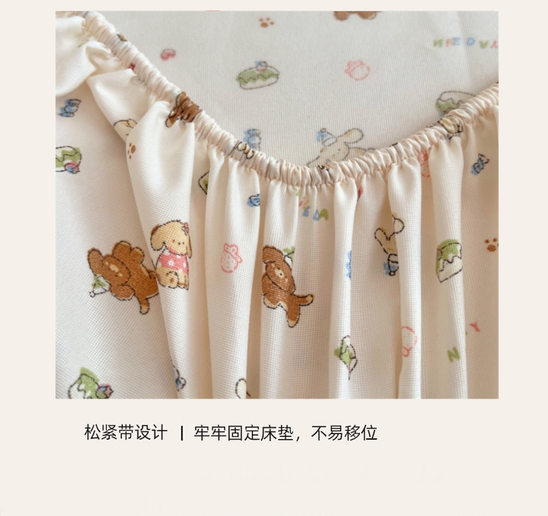 • 91家纺网 家纺一手货源 找家纺 梦舒羽 2025新款针织棉双层纱双层纱床笠罩全包席梦思床垫保护罩 蛋糕萌犬