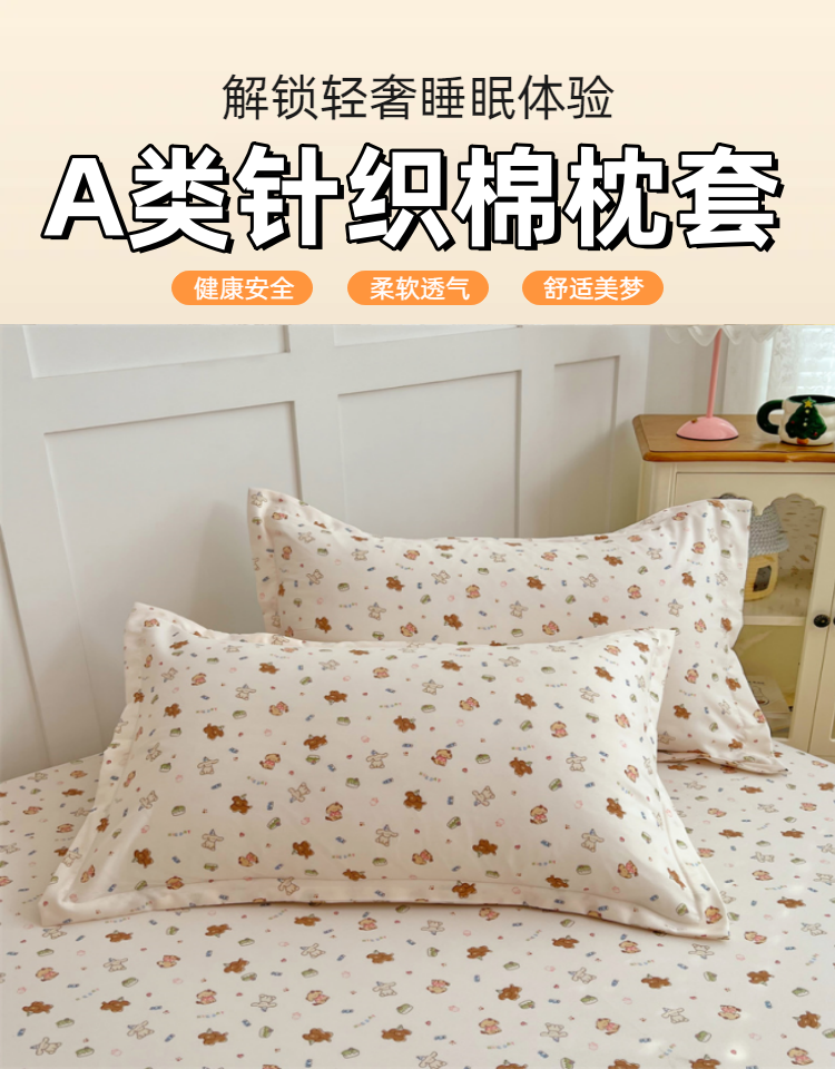 商品名称:圣比熊 2025新款针织棉双层纱枕头套双人枕套枕芯套宿舍单人枕头内胆套 蛋糕萌犬