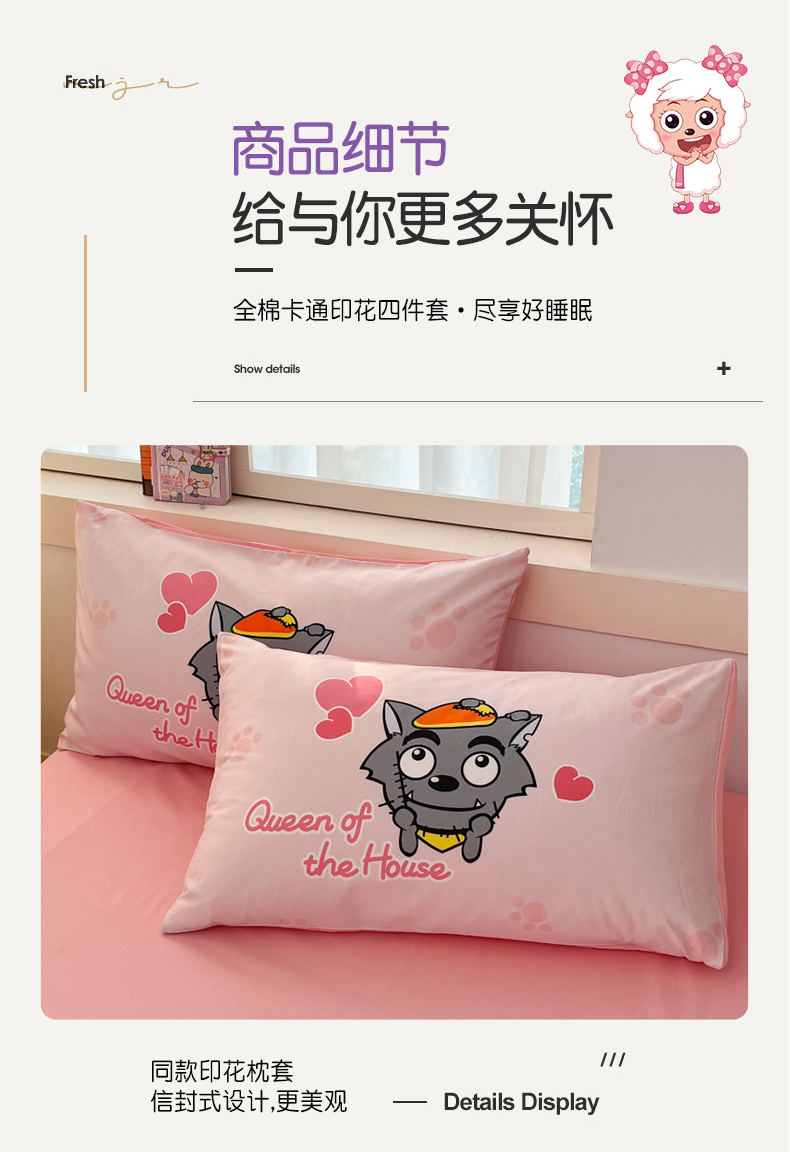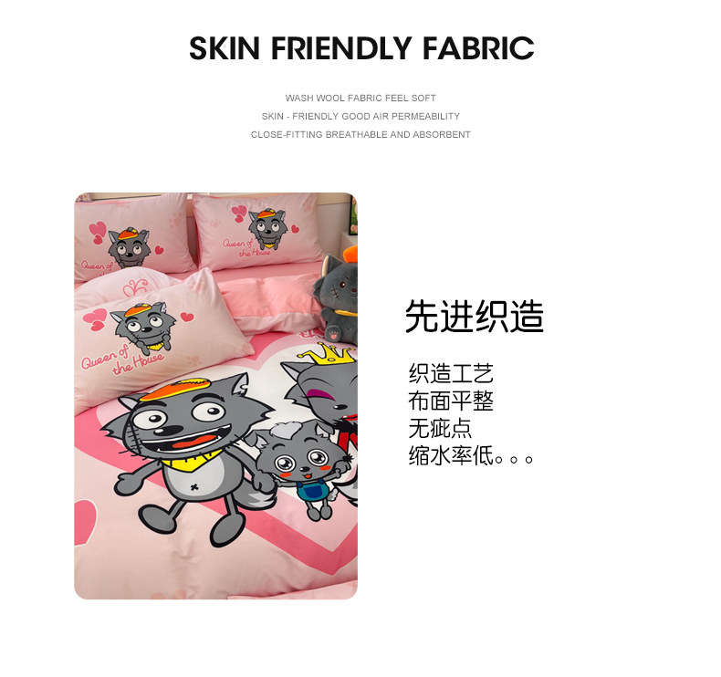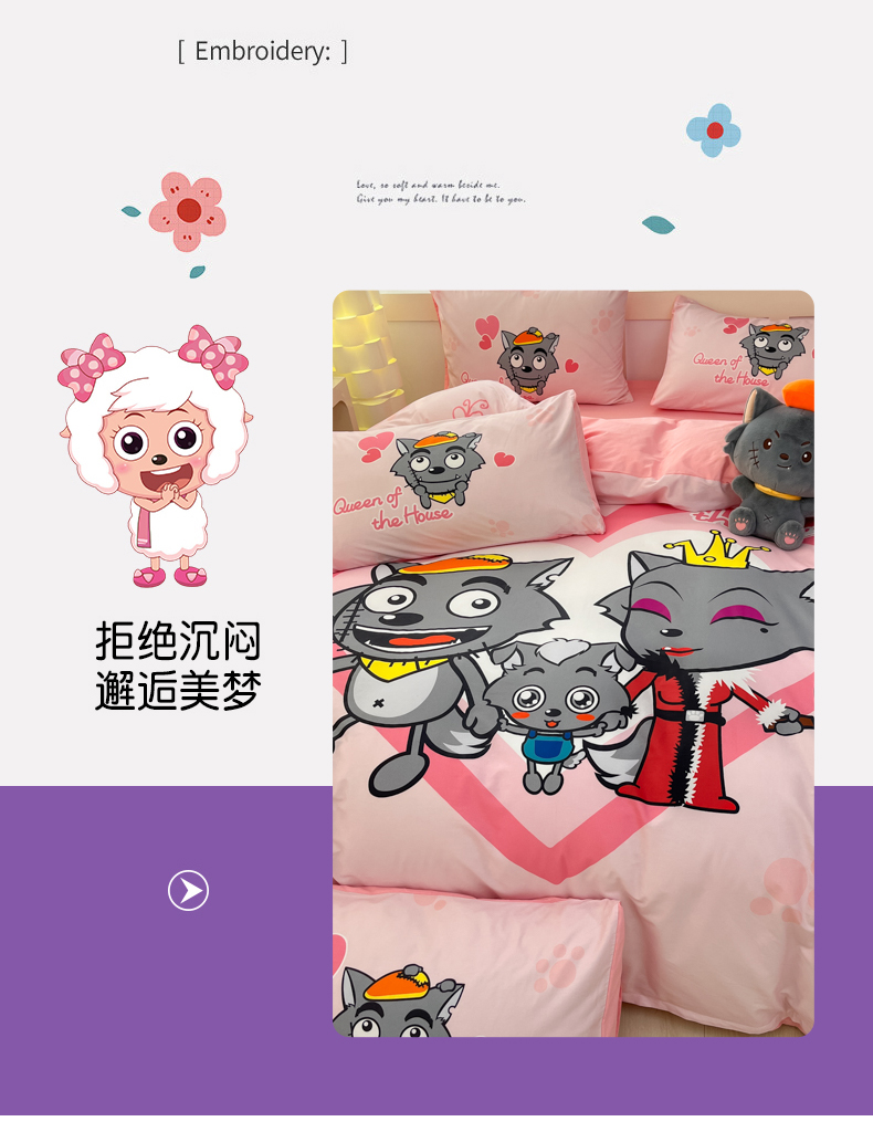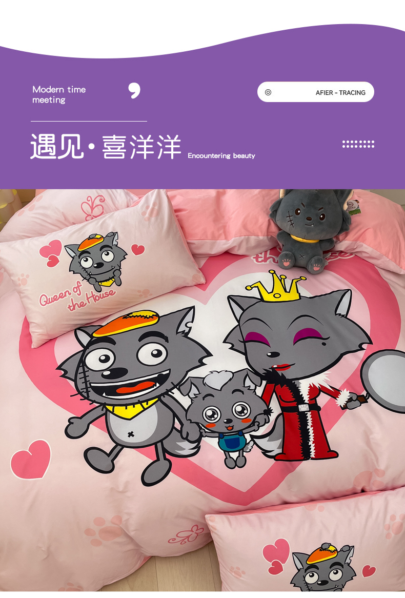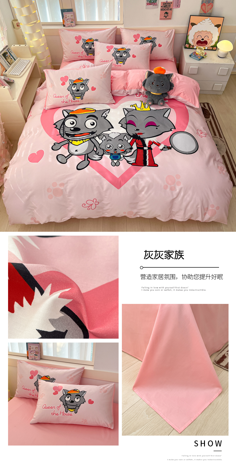 当前位置: 91家纺网 > 商品网购 > 床品套件 > 四件套 > 全棉普通四件套 > 金爱家 2025新款喜洋洋纯棉数码印花系列四件套 灰灰家族