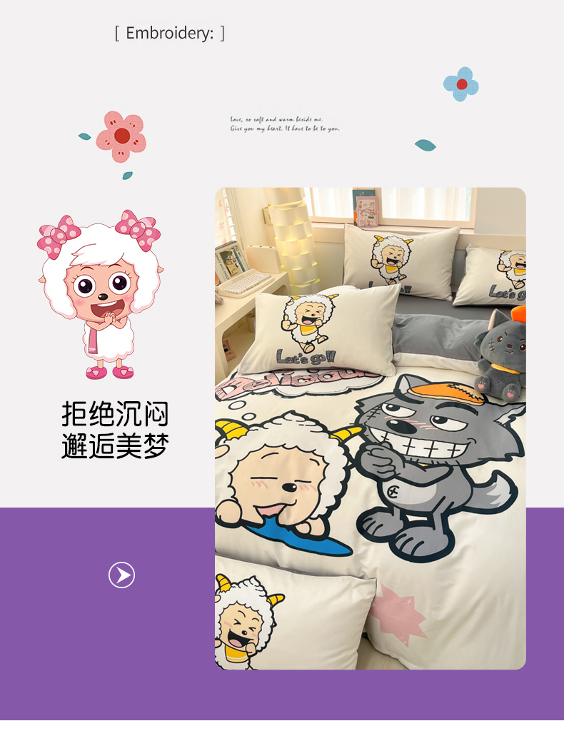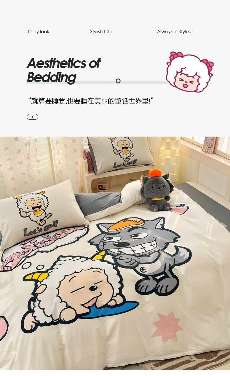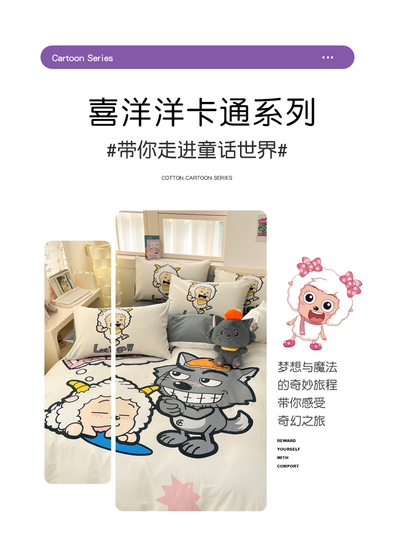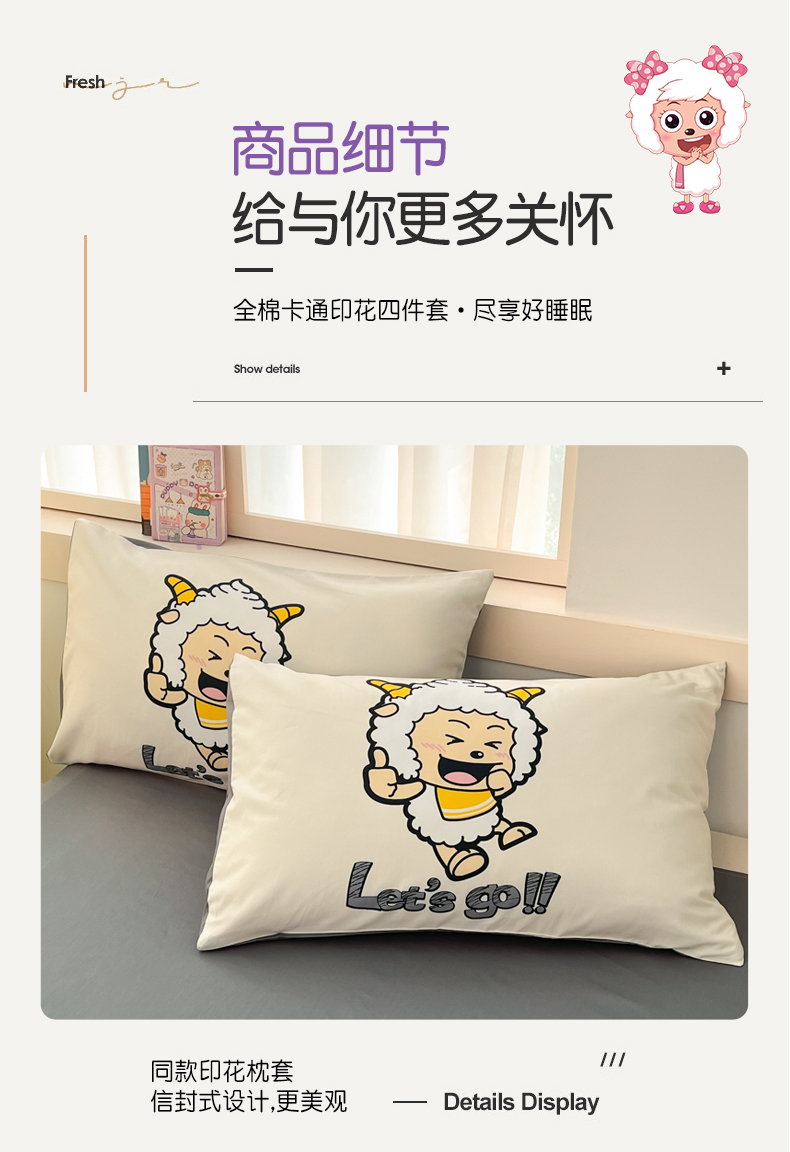 当前位置: 91家纺网 > 商品网购 > 床品套件 > 四件套 > 全棉普通四件套 > 金爱家 2025新款喜洋洋纯棉数码印花系列四件套 洋洋得意