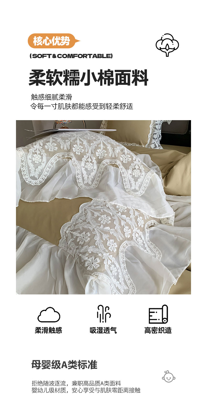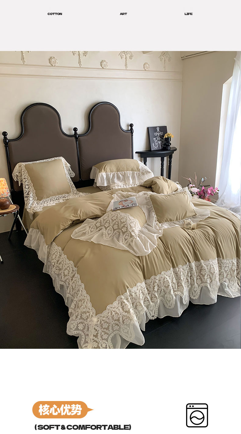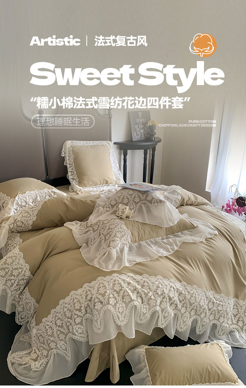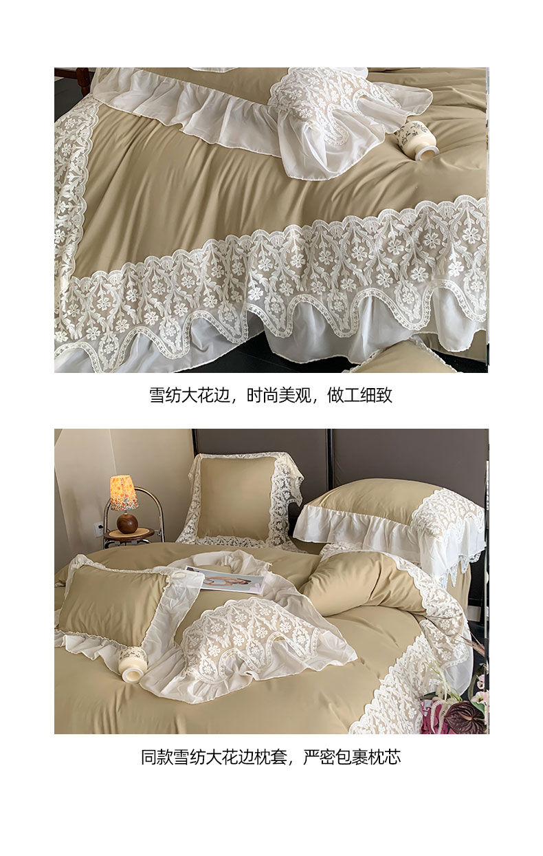 商品名称:吾欢心 2025新款糯小棉法式雪纺花边四件套-巴洛克 巴洛克抹茶绿