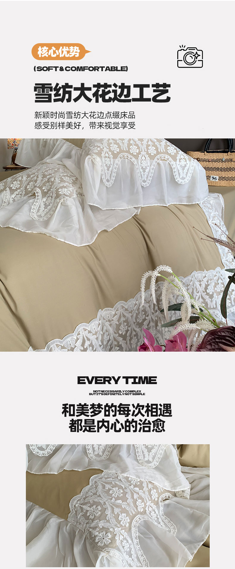 (总)吾欢心 2025新款公主风雪纺边四季通用夹棉床盖,床盖白,床盖粉,床盖黄,床盖咖,床盖绿,床盖抹茶绿,床盖紫
