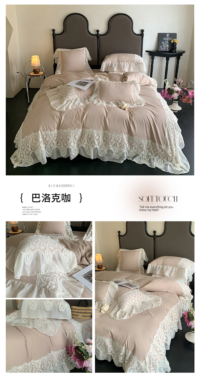(总)吾欢心 2025秋冬新款加厚雕花绒婴儿绒安娜贝尔系列法式双层花边四件套,安娜贝尔白,安娜贝尔粉,安娜贝尔咖,安娜贝尔蓝,安娜贝尔绿,安娜贝尔紫