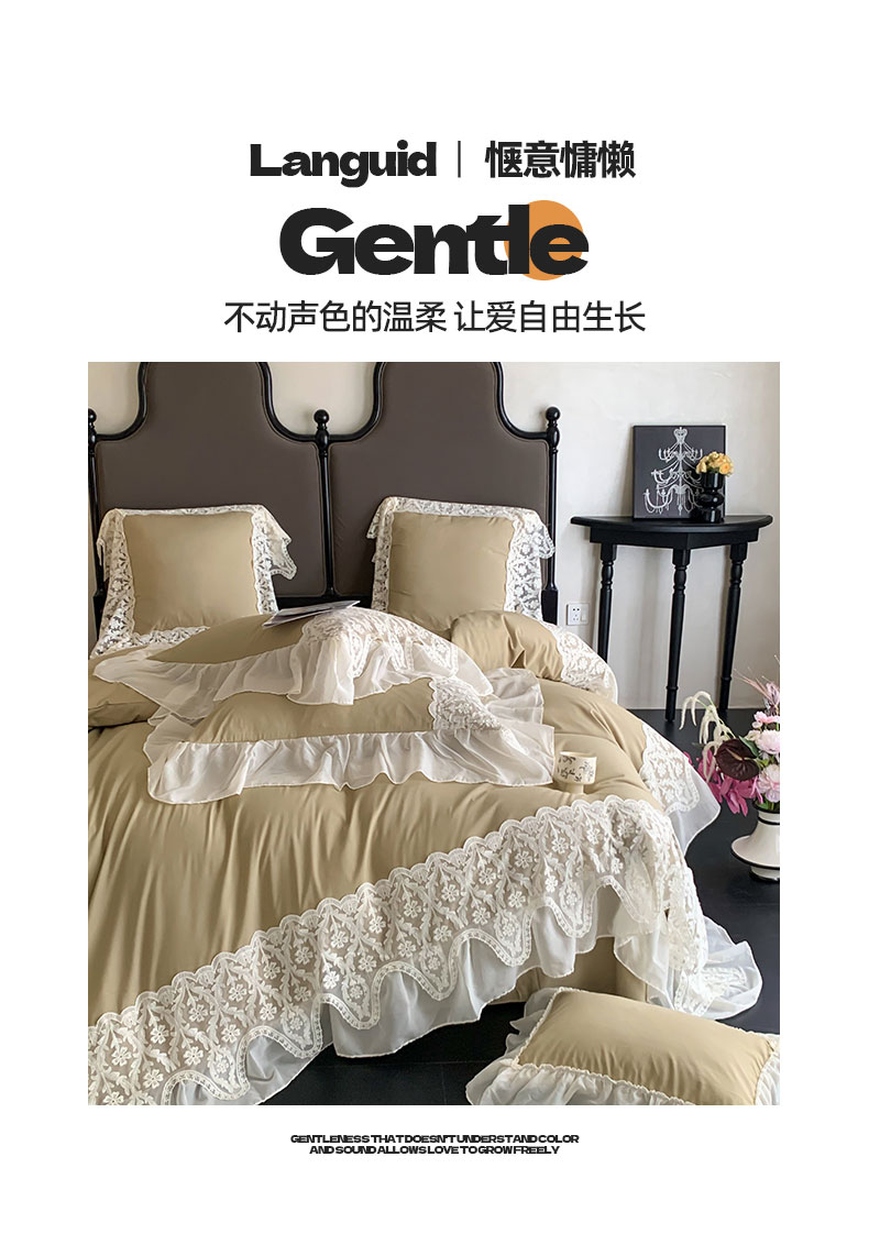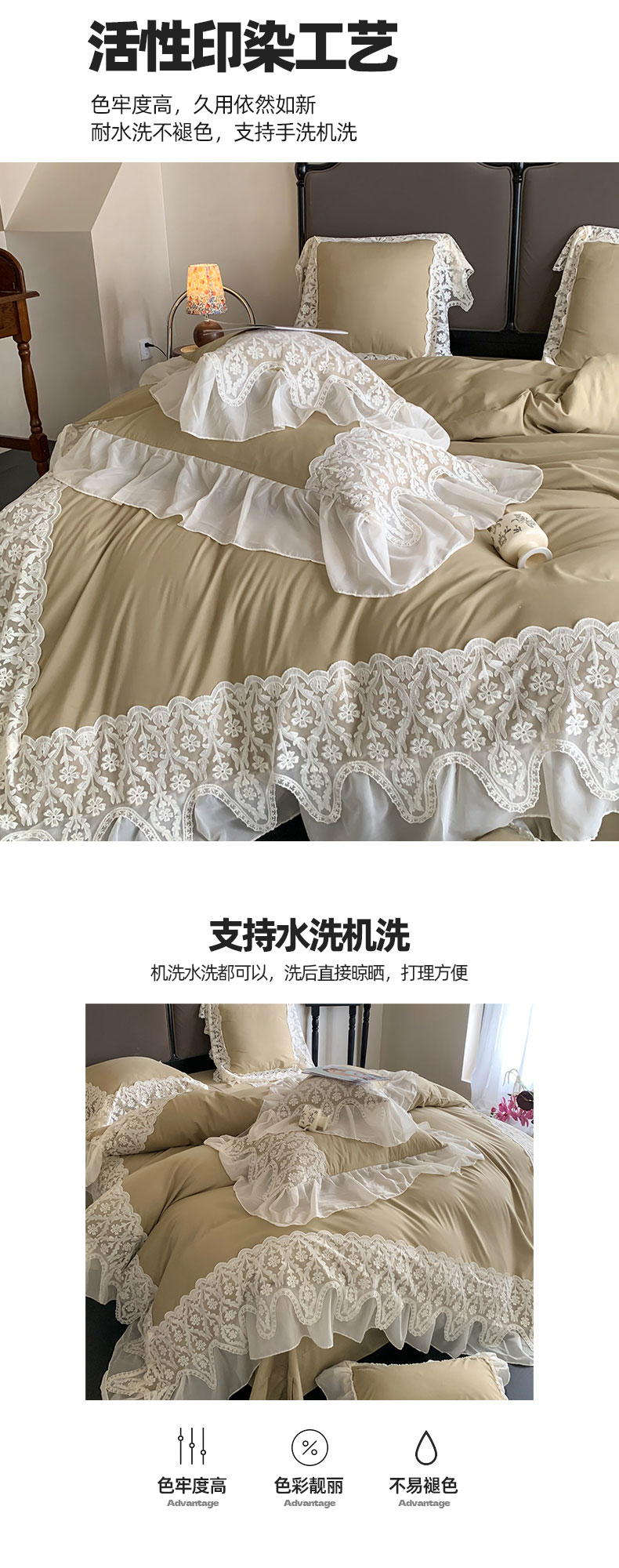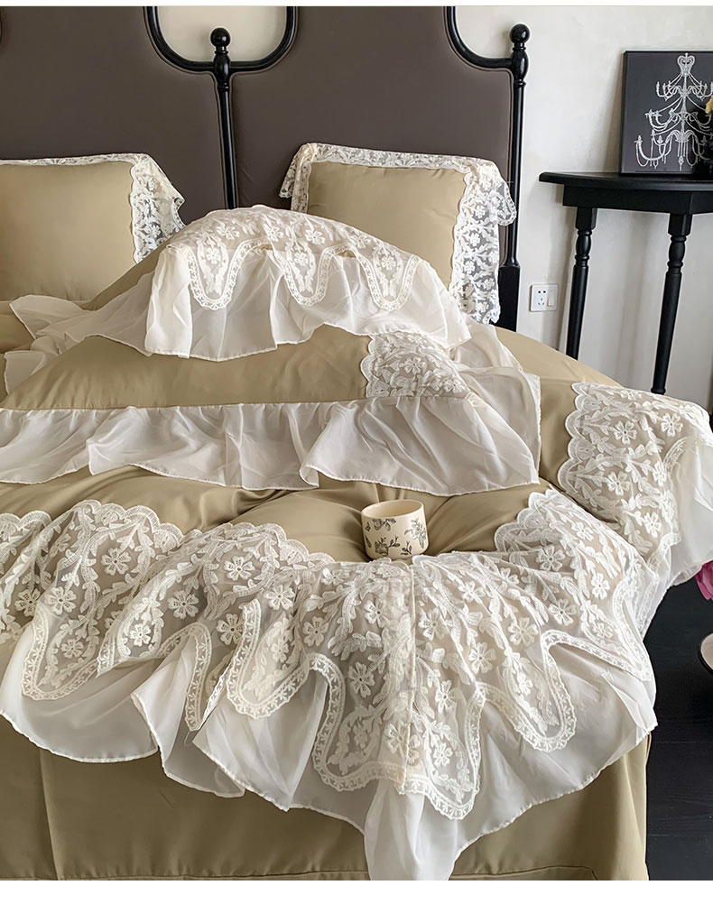 吾欢心 2025新款糯小棉法式雪纺花边四件套-巴洛克 巴洛克抹茶绿