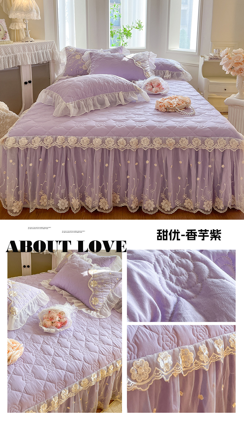 • 91家纺网 家纺一手货源 找家纺 瑞宝 2025新款水洗棉花边夹棉床裙甜优系列三件套(供货价+30) 甜优-芬兰紫