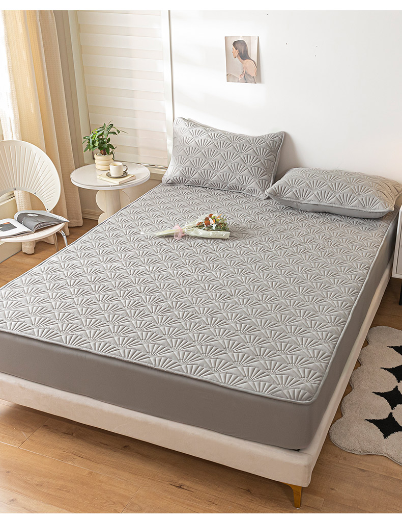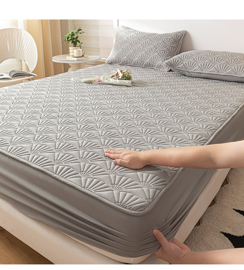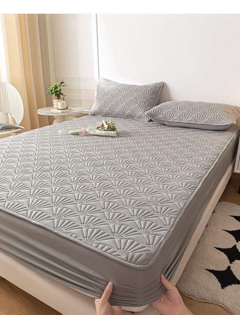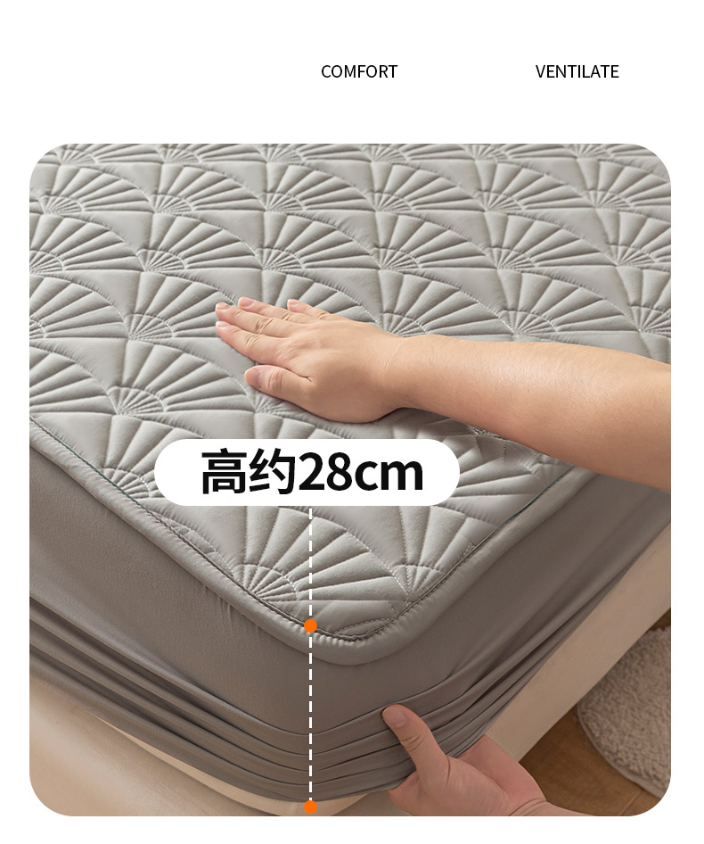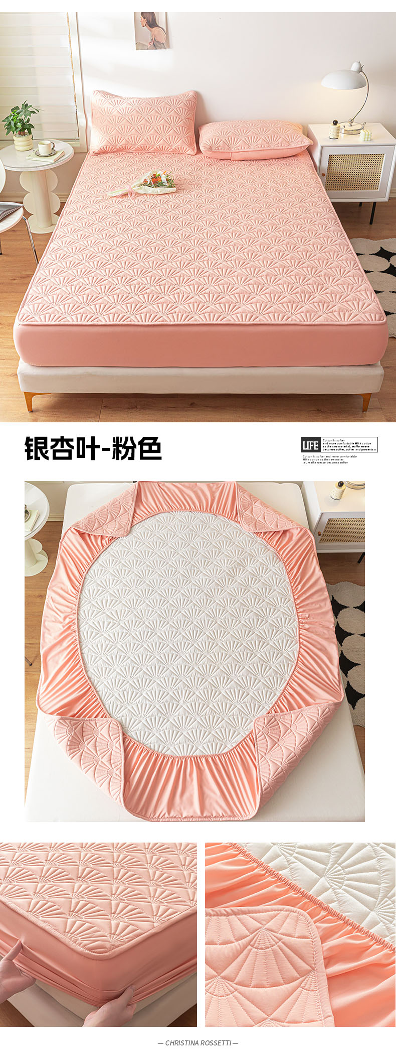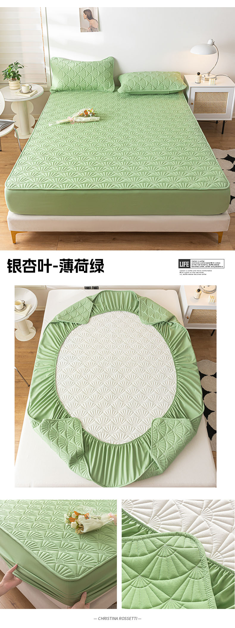 福来临家纺 2025新款加厚夹棉银杏叶系列夹棉防水隔尿床笠 银杏叶-浅灰色