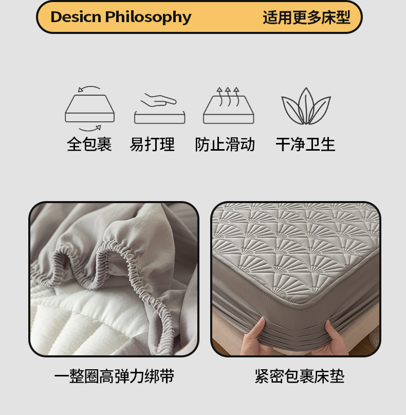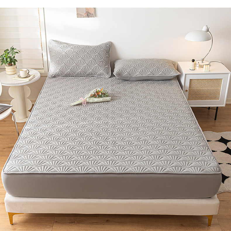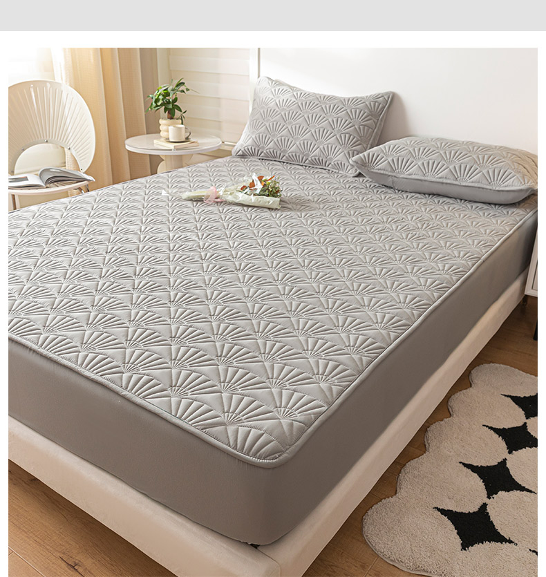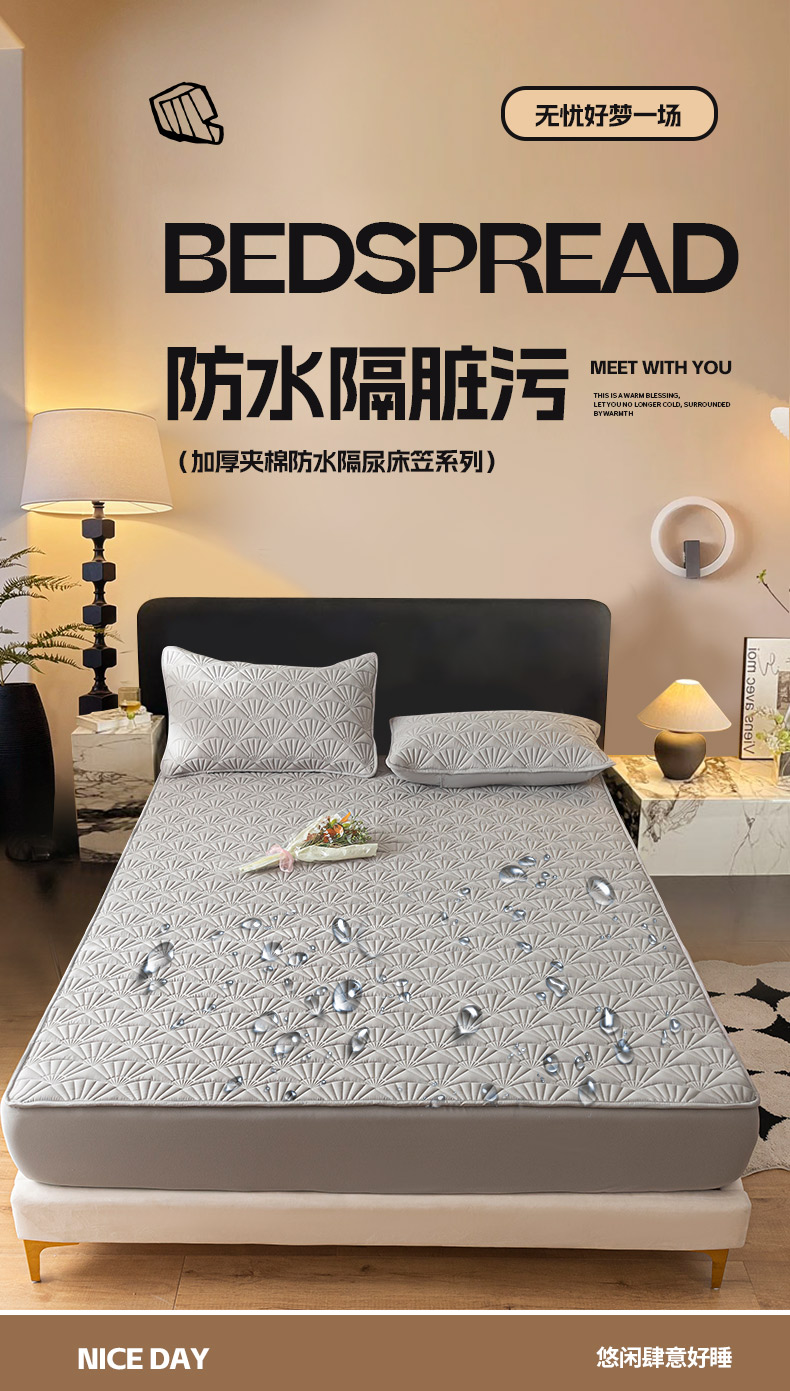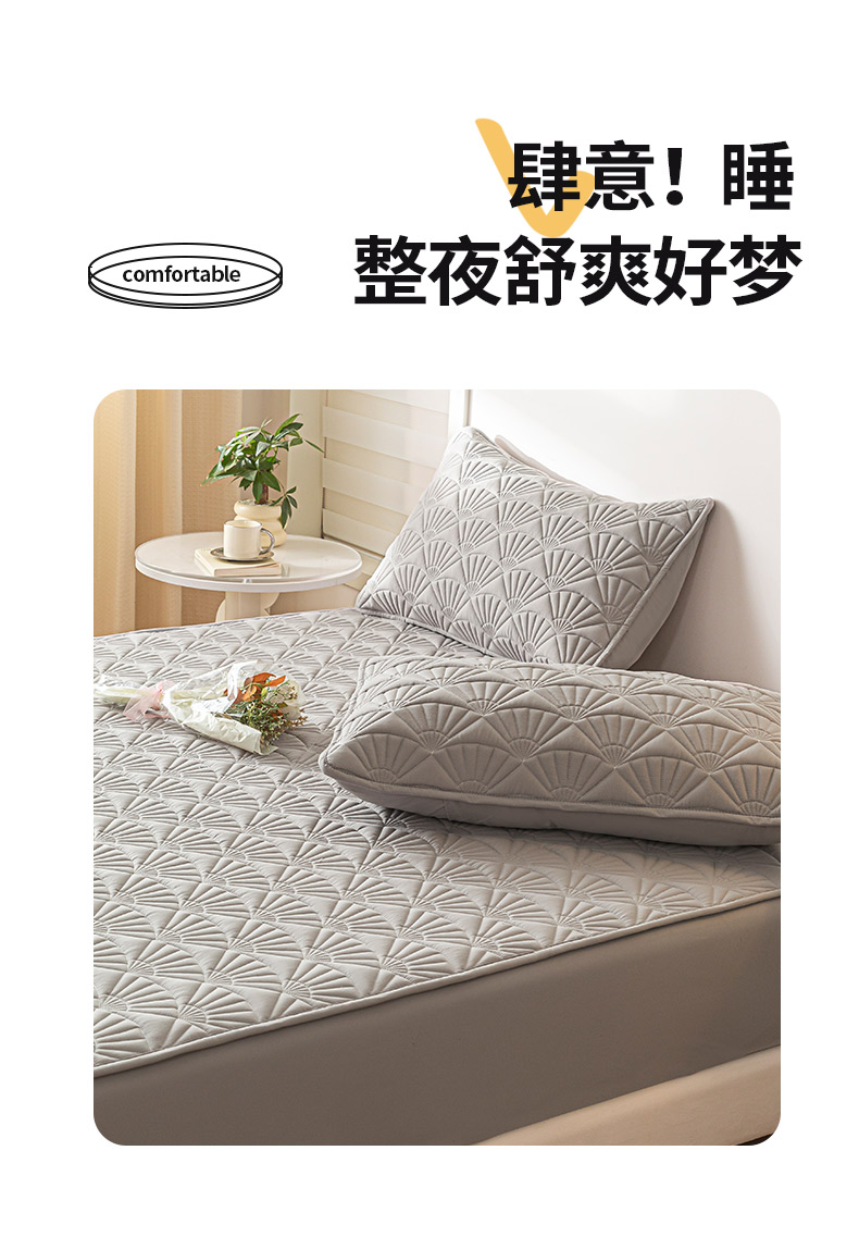 • 91家纺网 家纺一手货源 找家纺 福来临家纺 2025新款加厚夹棉银杏叶系列夹棉防水隔尿床笠 银杏叶-浅灰色