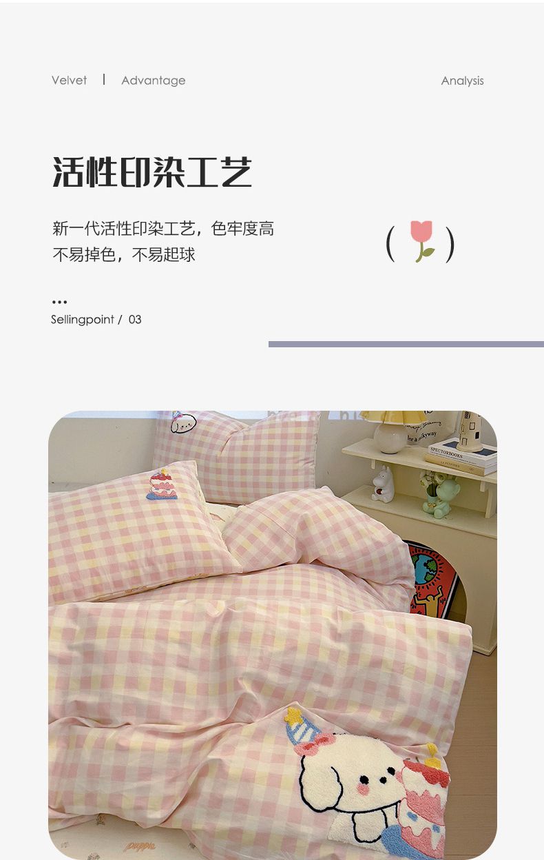 (总)乐童家纺 2025新款小清新牛奶绒毛巾绣四件套-第三波,波点小熊,调皮的小熊,花园小兔咖,小猪派派,樱桃兔,波点米菲兔,彩色小猫
