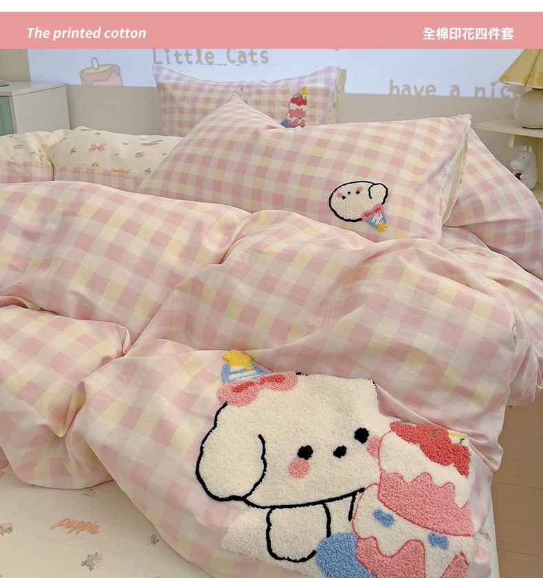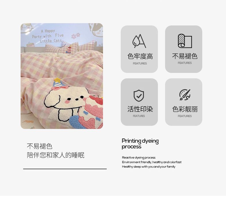 总乐童家纺 2023新款网红直播爆款吊边+一字绣工艺款四件套(十二),黑粉爱心 ,猫咪小象,甜心小兔,斑点熊,草莓花花,氛围小兔,梦幻草莓,甜甜圈,温婉佳人,小迷糊,小兔日记,云朵熊,缤纷草莓,彩色萌猫,果园风情,浪漫草莓,皮皮狗,田园花香,炫彩小熊,茉彩,彩色恋曲