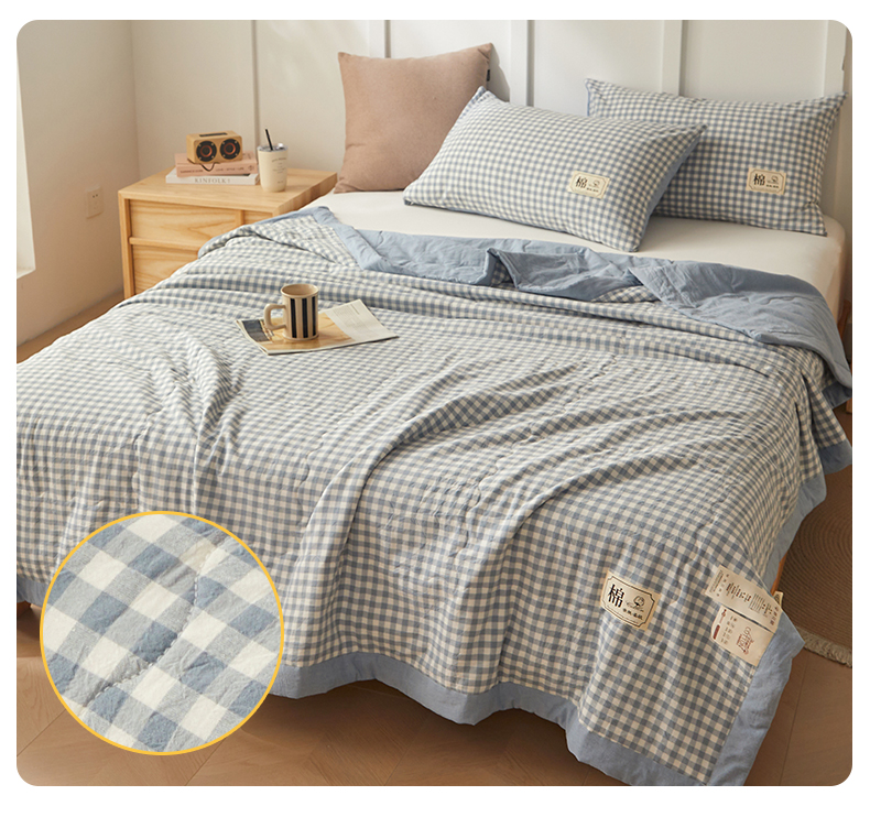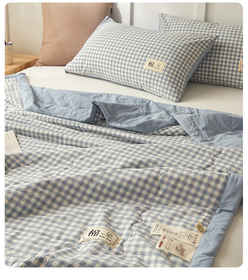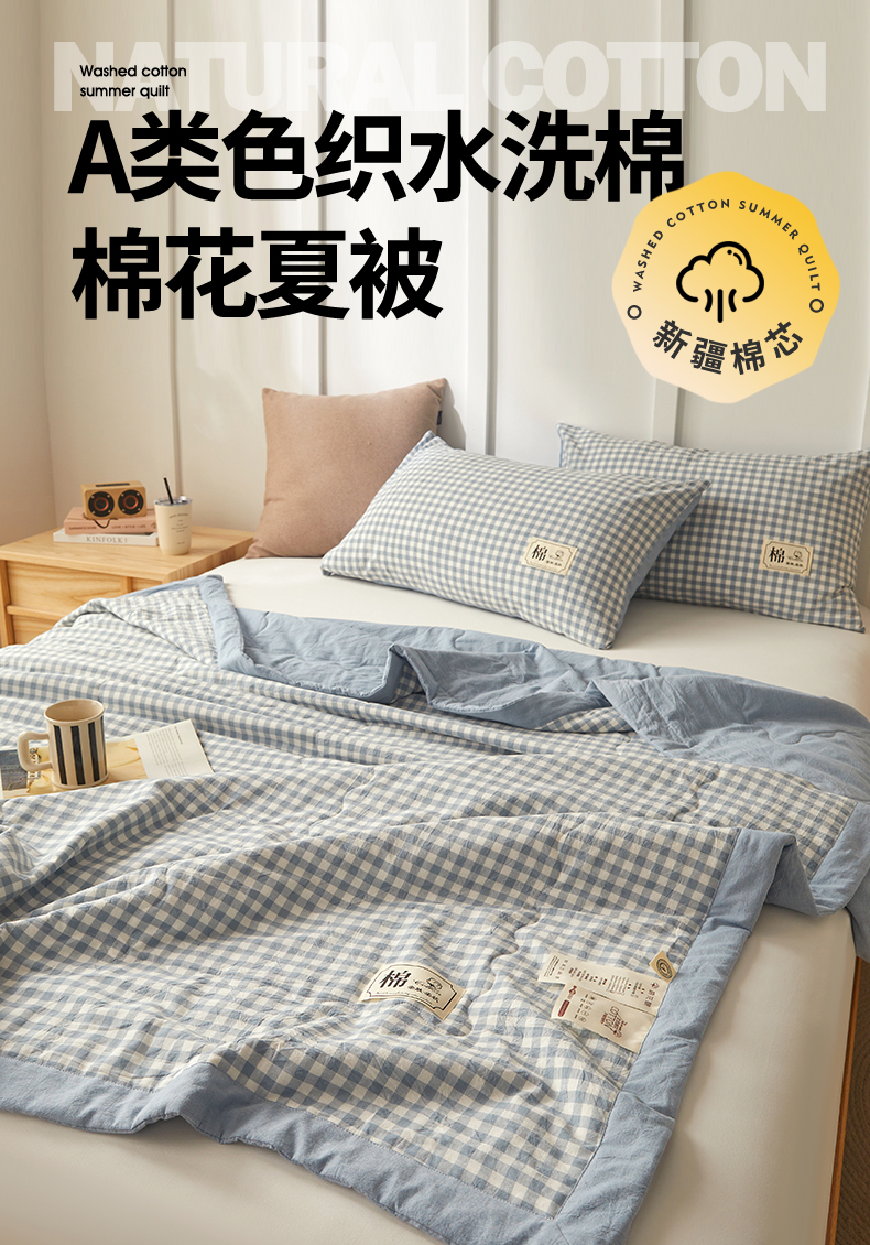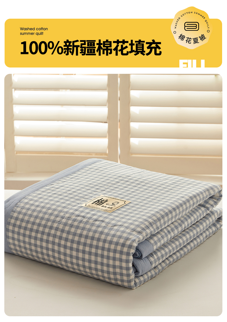 • 91家纺网 家纺一手货源 找家纺 招财星家纺 2025新款A类色织水洗棉夏被新疆棉花被空调被夏凉被 蓝小格