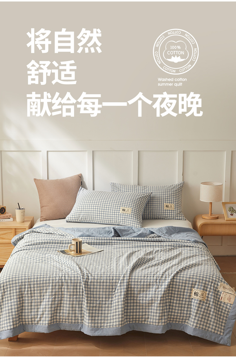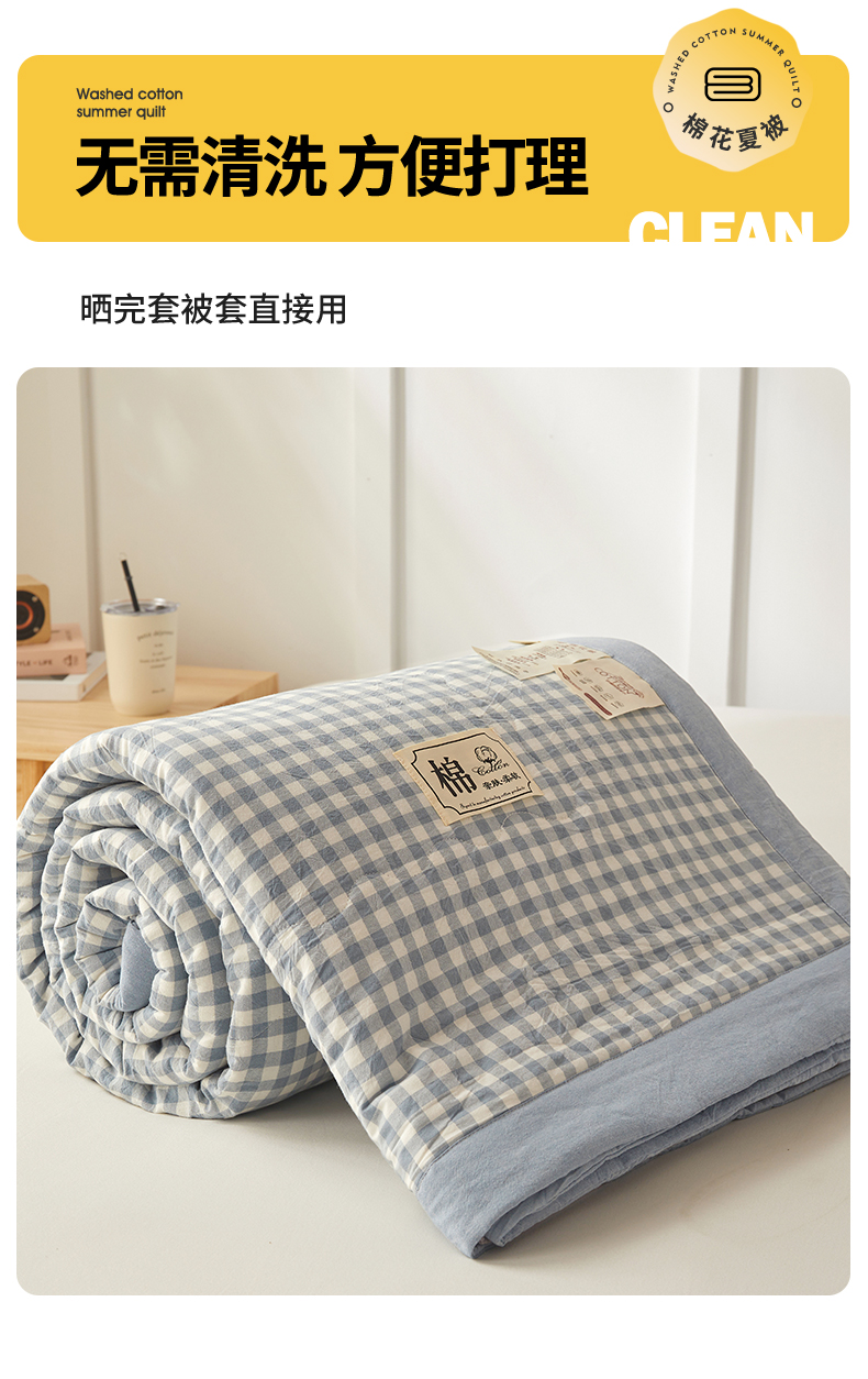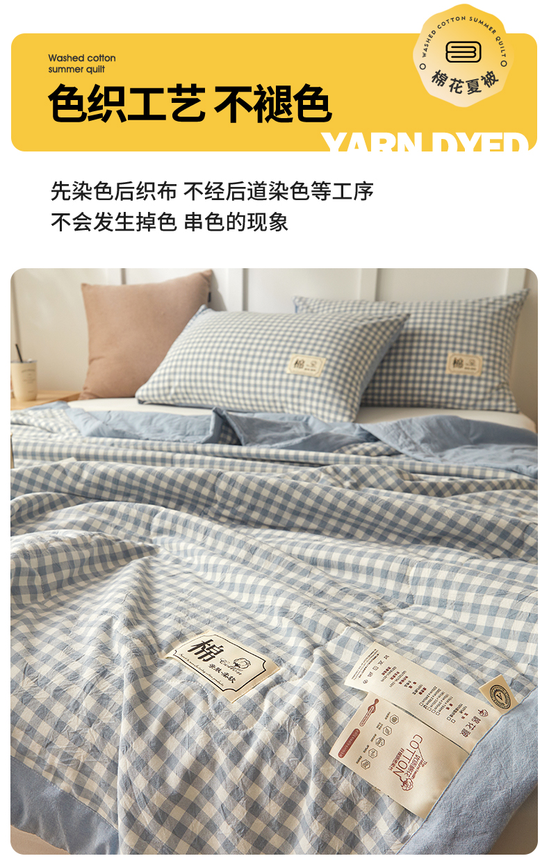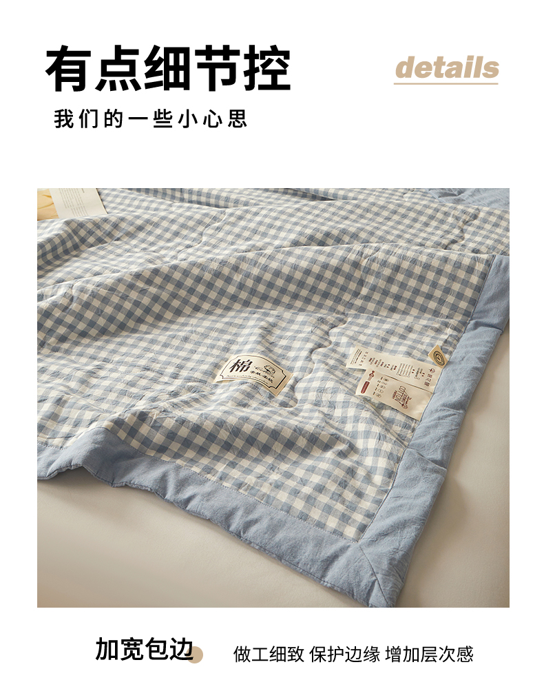 • 91家纺网 家纺一手货源 找家纺 招财星家纺 2025新款A类色织水洗棉夏被新疆棉花被空调被夏凉被 蓝小格