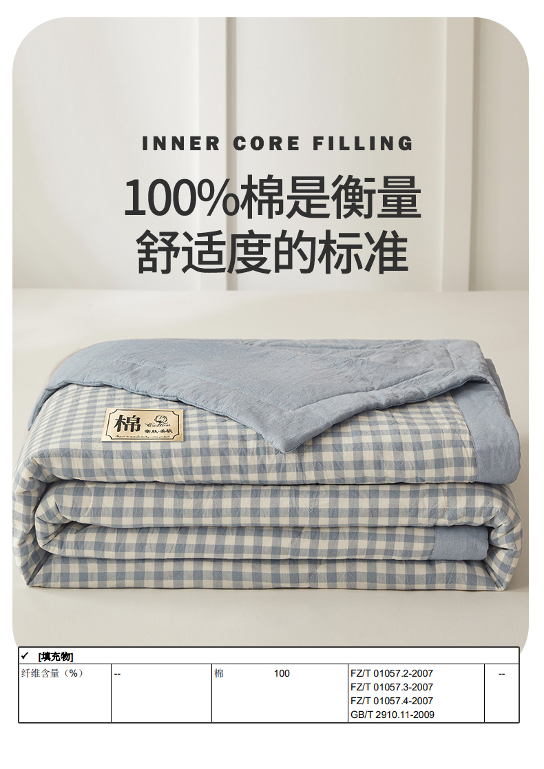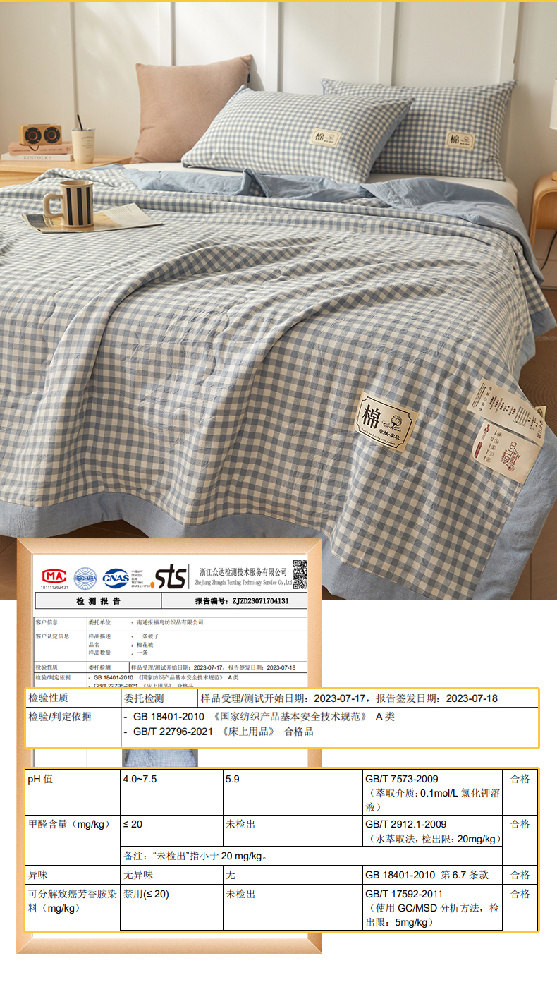 当前位置: 91家纺网 > 商品网购 > 被子 > 夏被 > 招财星家纺 2025新款A类色织水洗棉夏被新疆棉花被空调被夏凉被 蓝小格