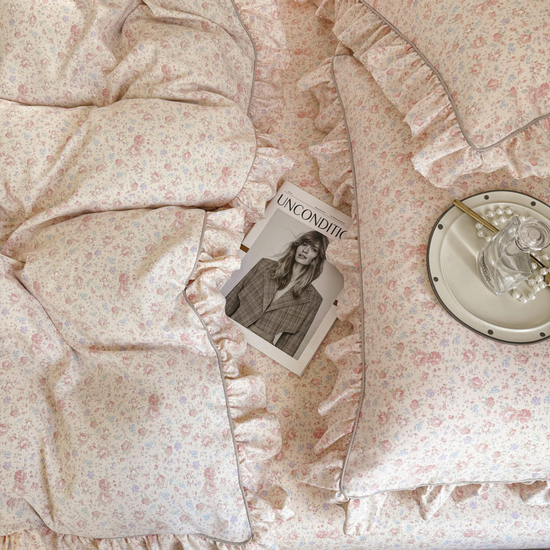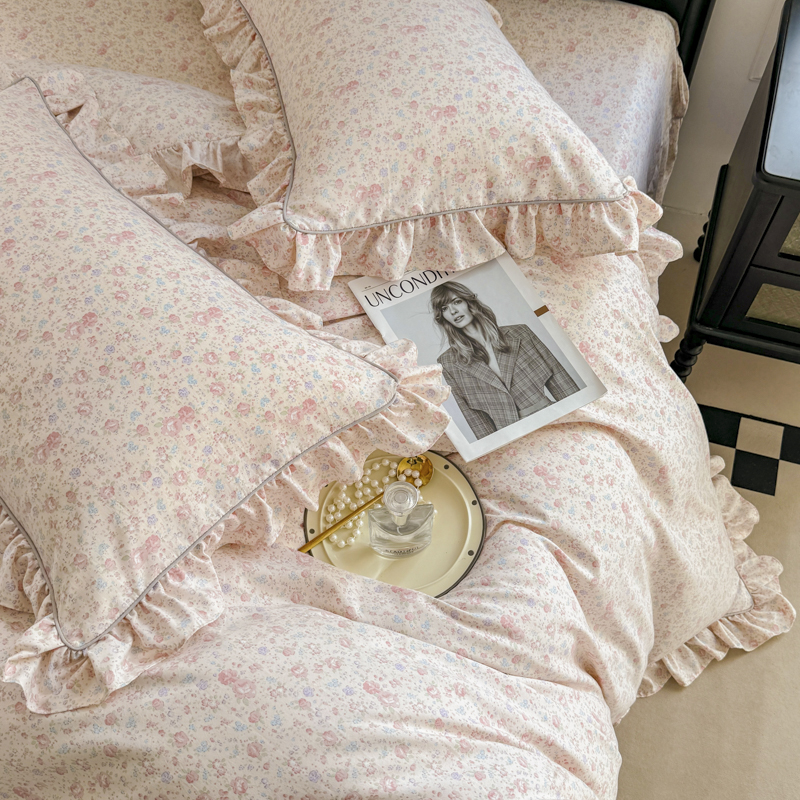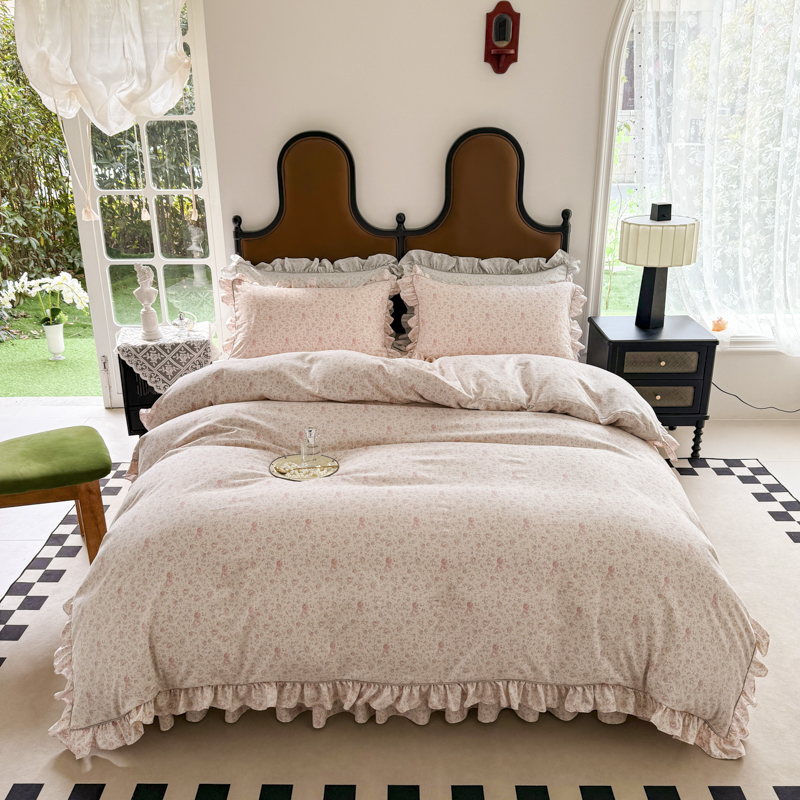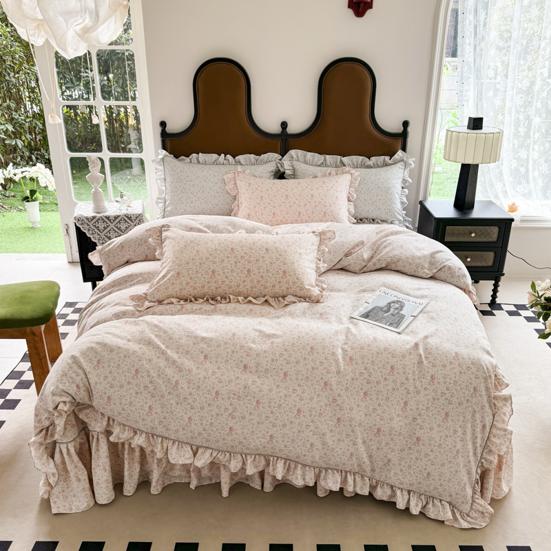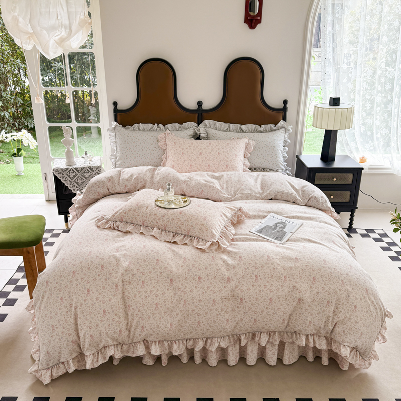 商品名称:孑寐家纺 2025新款嵌绳款韩版床裙款四件套 花语觅(粉)