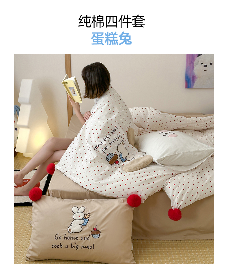 (总)桔子家纺 2026春夏新款100s全棉纯棉复古樱桃系列四件套-场景二,复古樱桃-粉,复古樱桃-米白