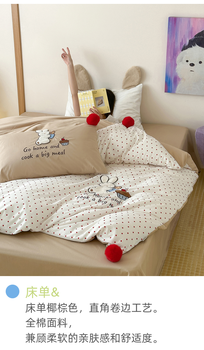 (总)桔子家纺 2025秋冬新款羊毛绒mi兔系列四件套,波点mi兔,复古红波点,黄油mi兔,烤面包