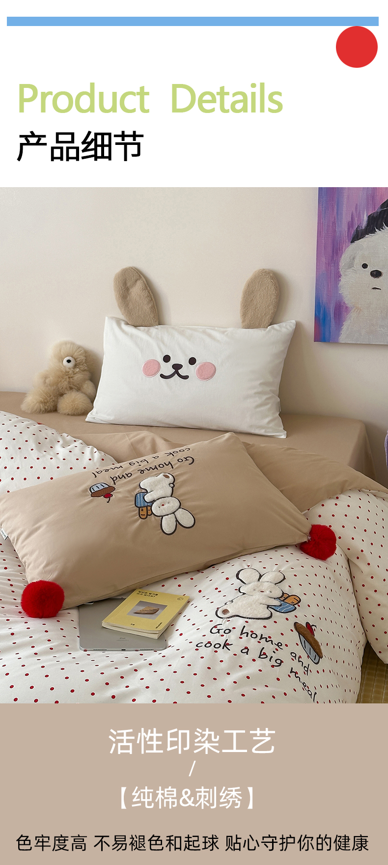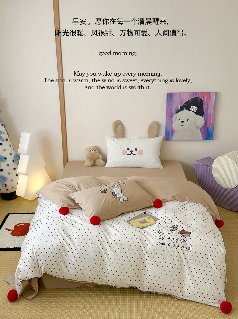 (总)桔子家纺 2026春夏新款100s全棉纯棉幸运系列四件套-场景二,幸运果(白色),幸运果(棕色),幸运小马
