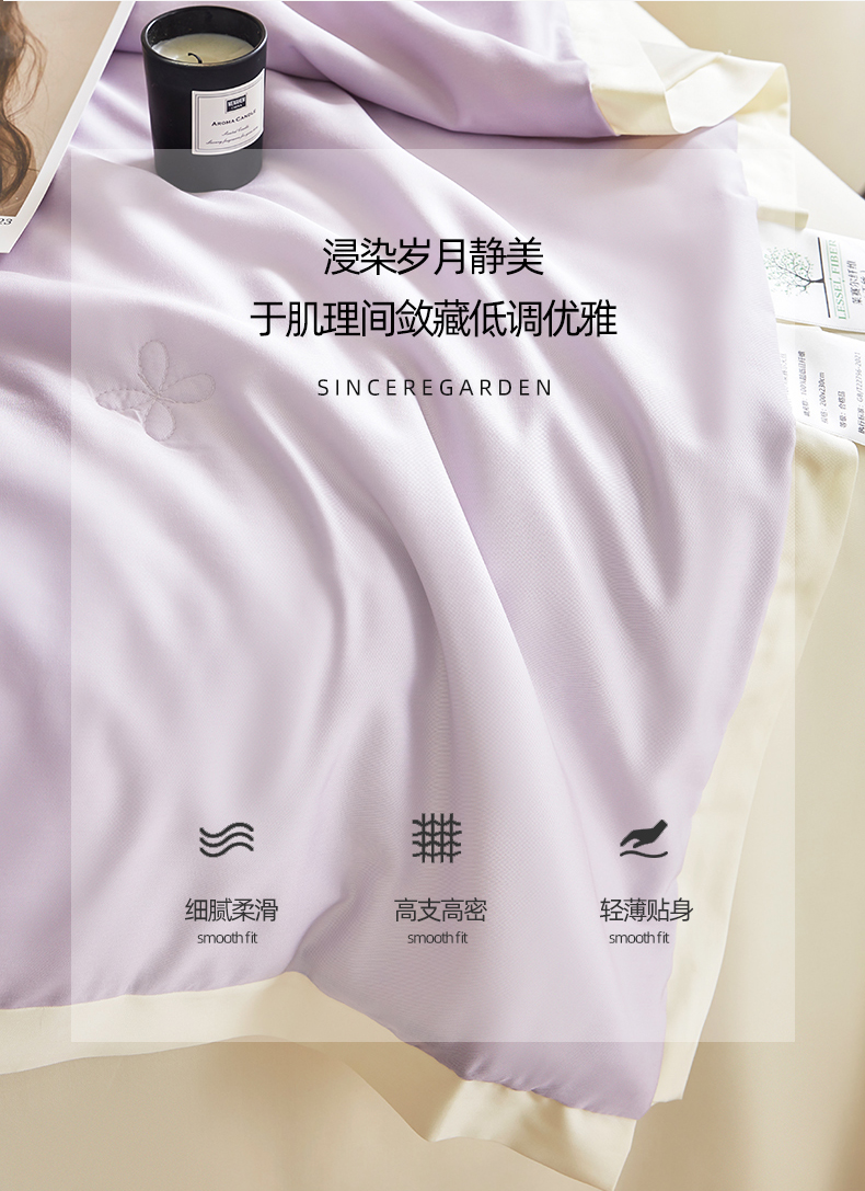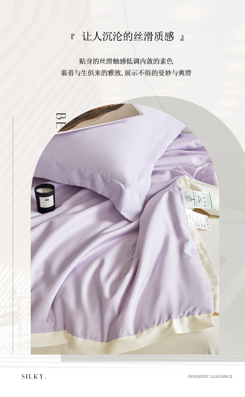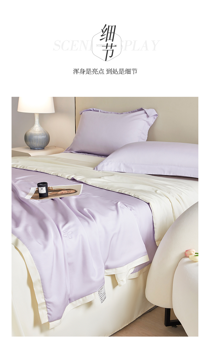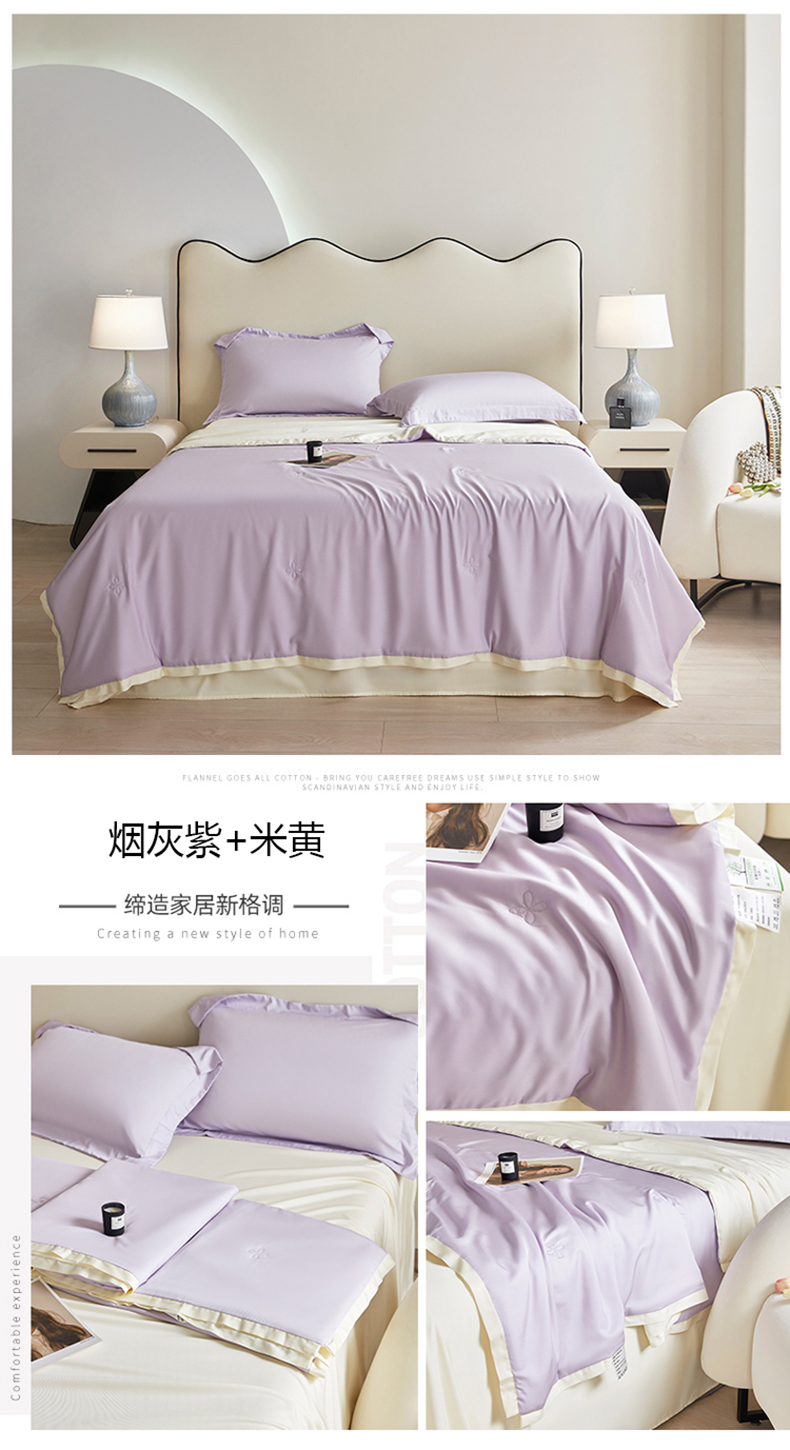 商品名称:天瑜家纺 2025新款纯色天丝夏被 烟灰紫+米黄