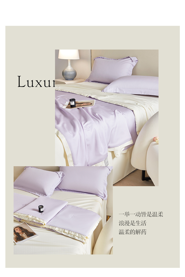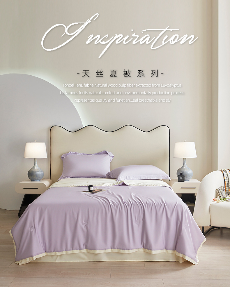 天瑜家纺 2025新款纯色天丝夏被 烟灰紫+米黄