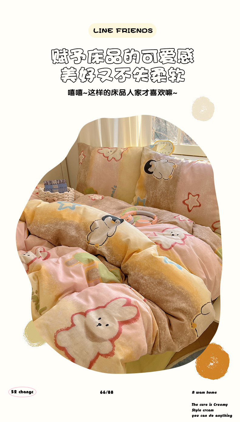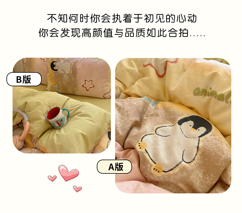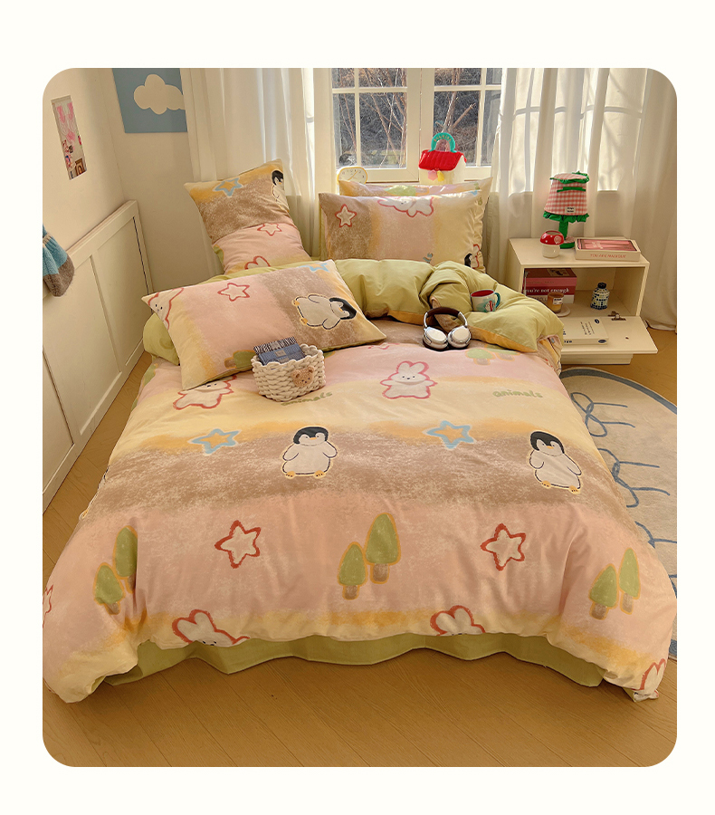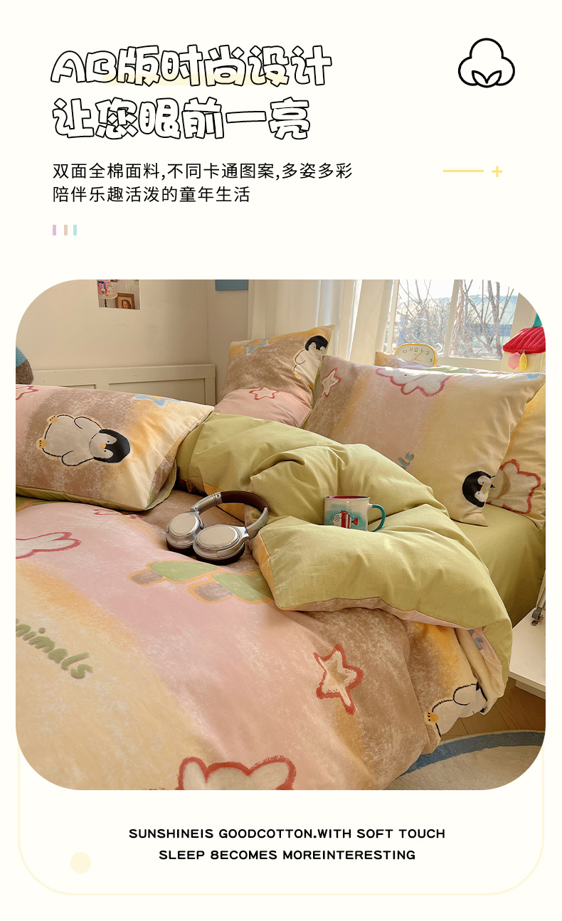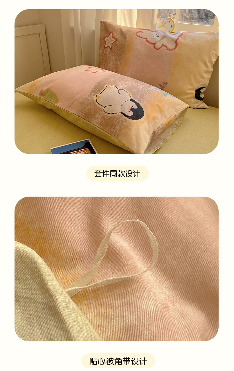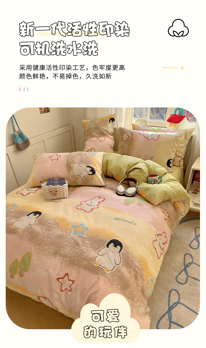 商品名称:2025春季新款13372全棉印花四件套-卡通系列 蜡笔企鹅兔