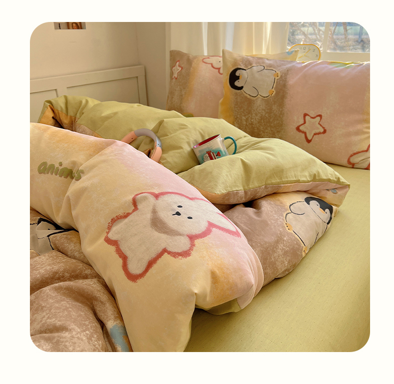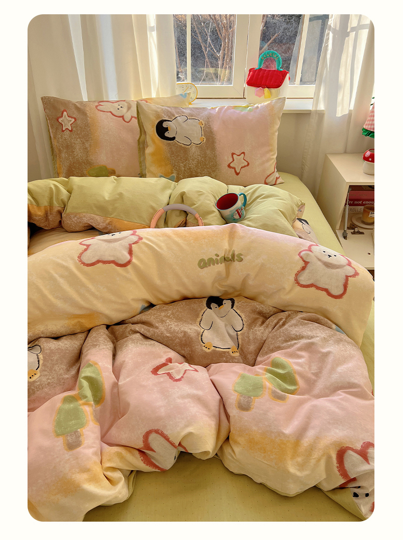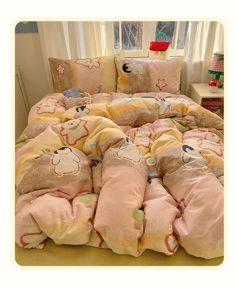 2025春季新款13372全棉印花四件套-卡通系列 蜡笔企鹅兔