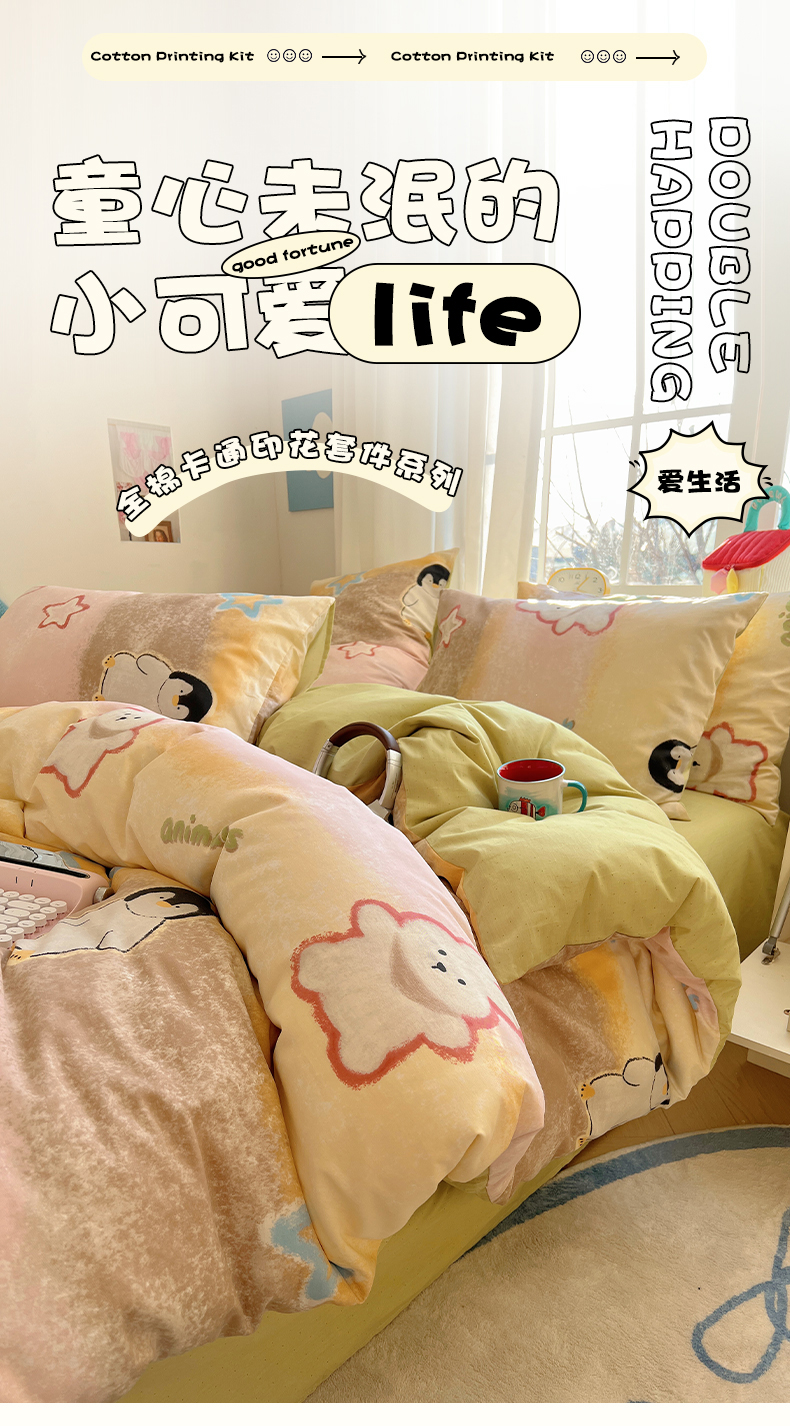 (总)瑞莱 2026春季新款全棉纯棉印花小清新萌趣系列四件套,小懒猫,KT猫,可爱猫咪,蓝花兔,路灯影院,莓果小萌,帕丁顿兔兔,企鹅家族,趣味涂鸦,甜梦日记,甜梦小精灵,甜心KT,小镇漫游记