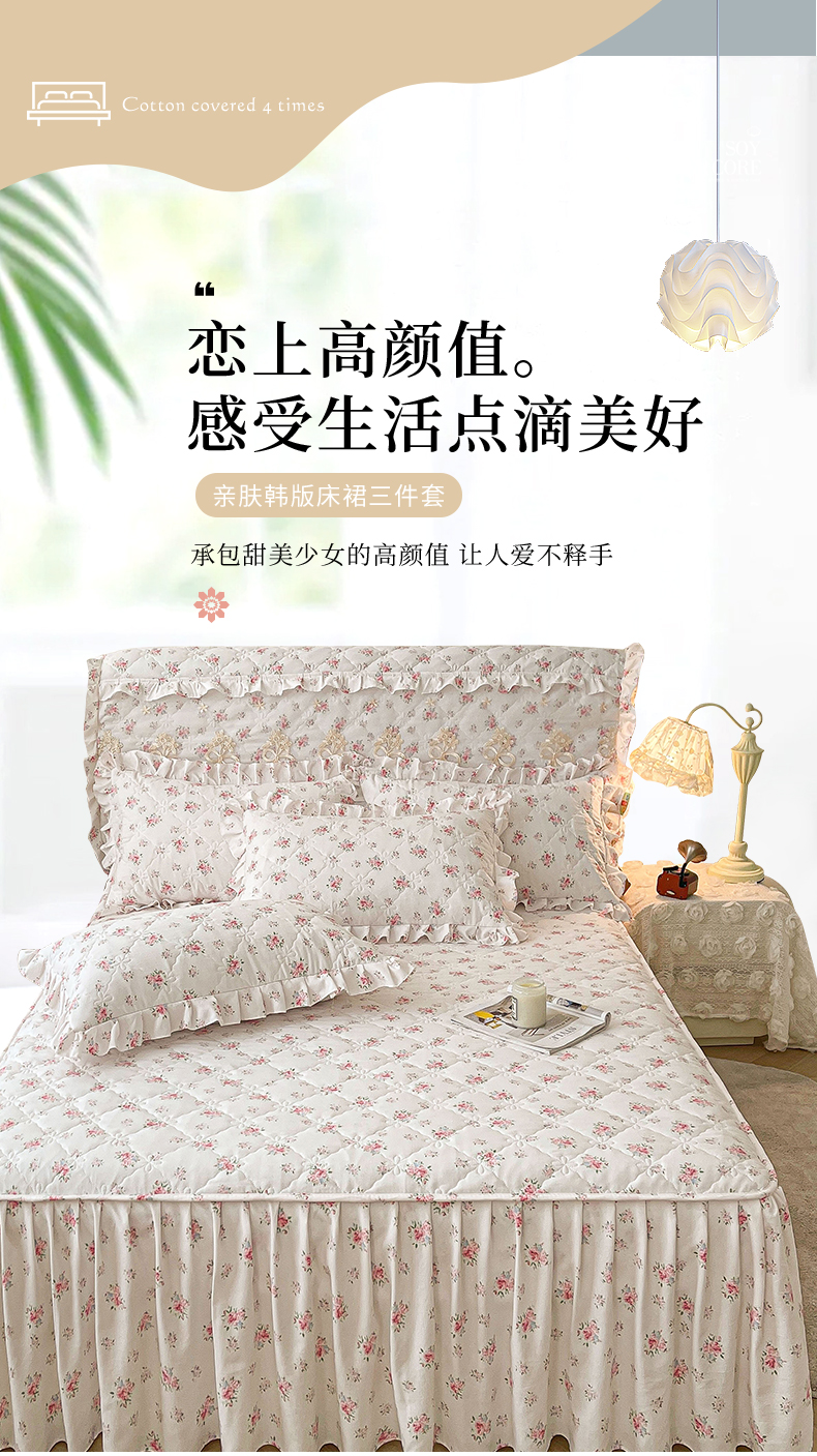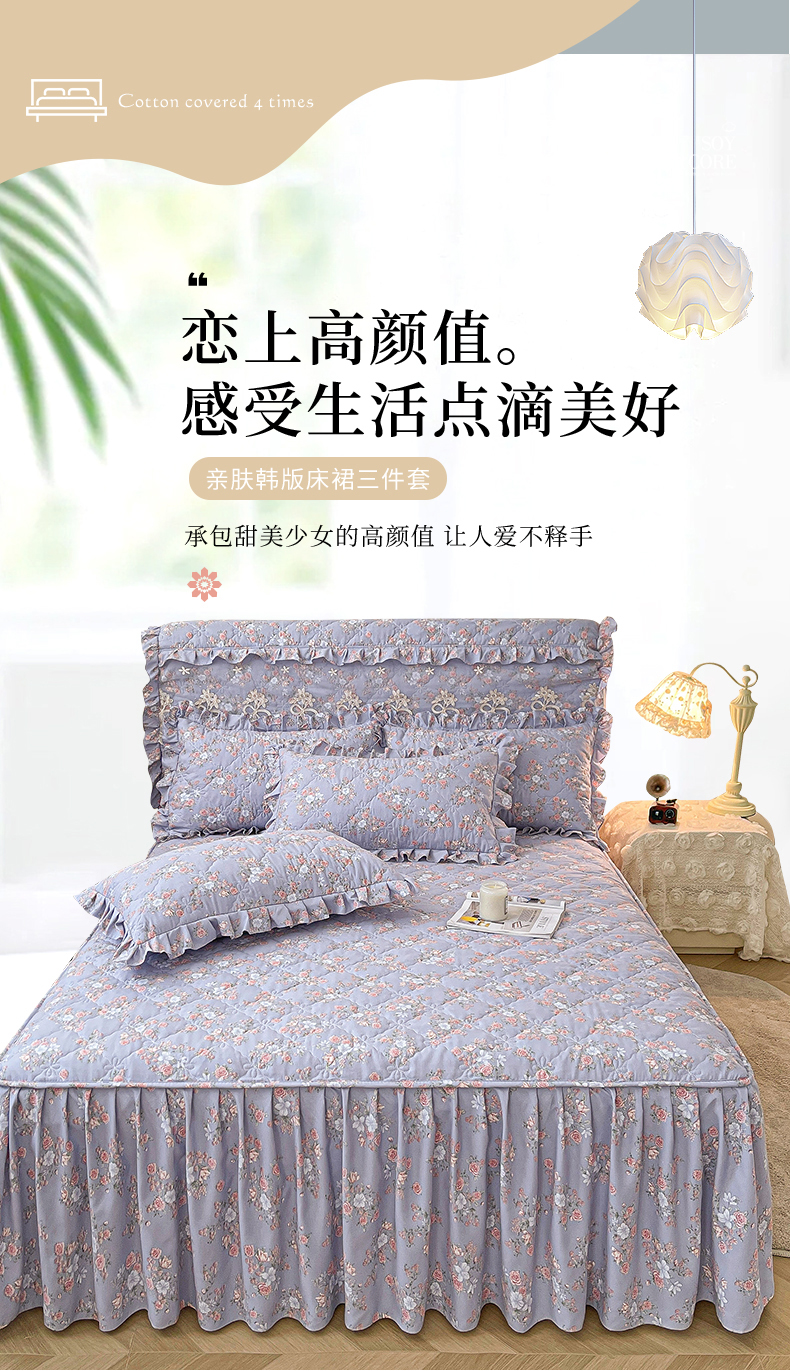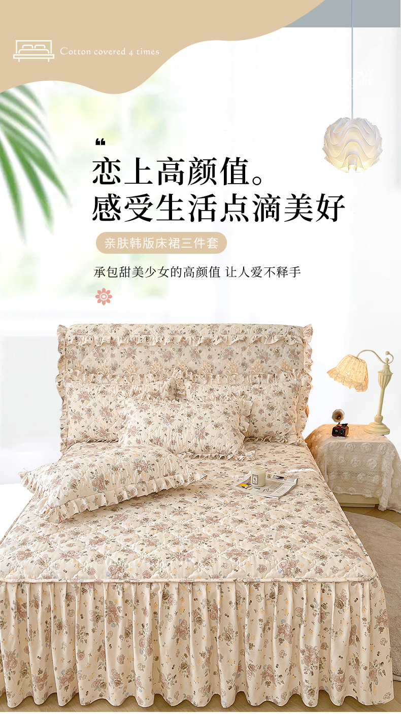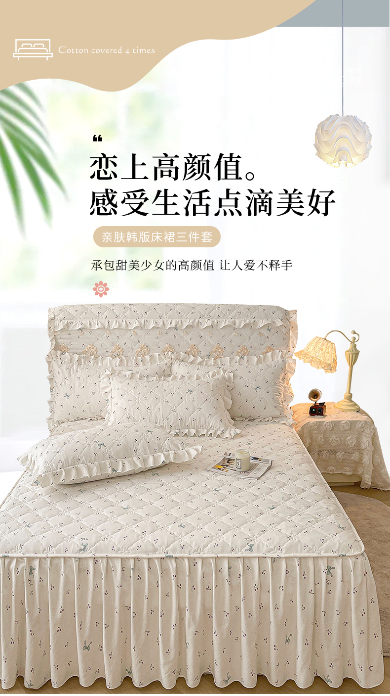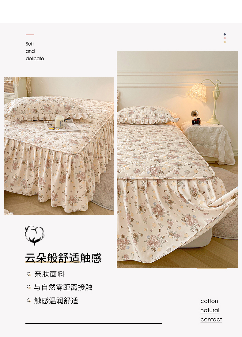 (总)十个点家纺 2025新款加厚磨毛木棉床裙三件套-绫罗系列,爱意萌萌,贝贝熊,格桑花,海棠花,蝴蝶兔,花千骨,米兰,木棉花,山茶花,同心结,心相印,心愿-米
