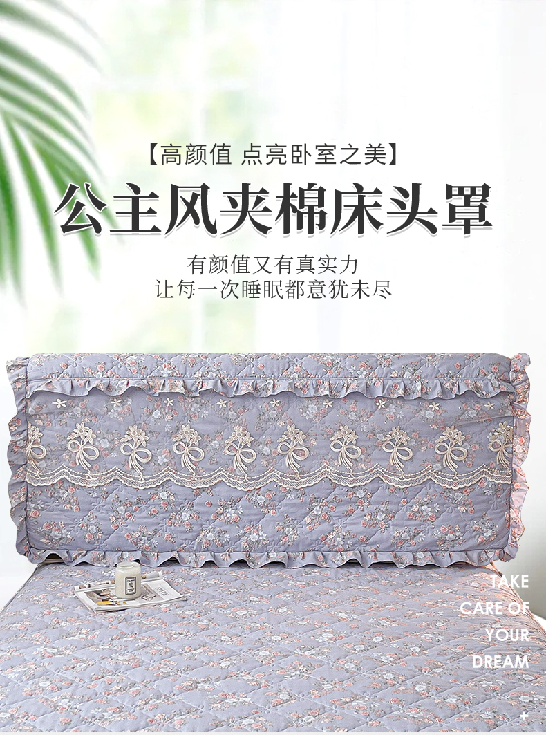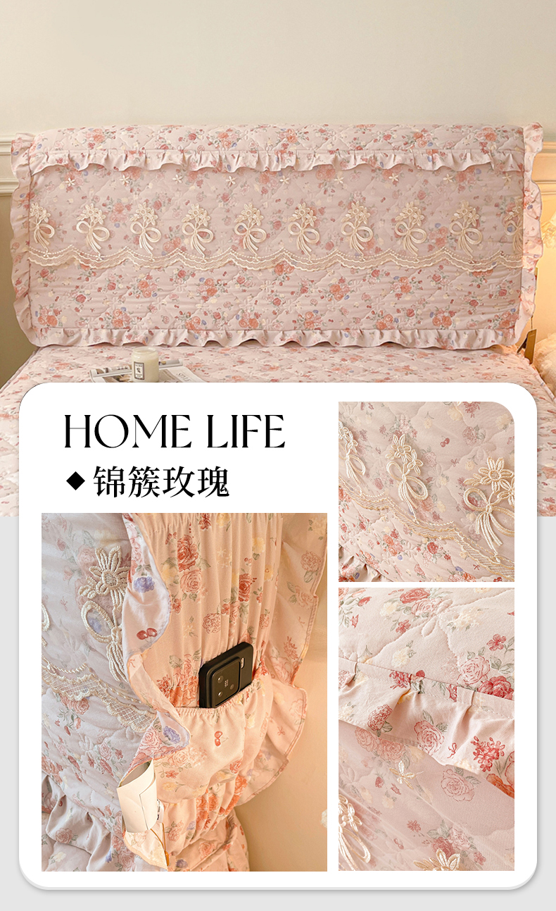 (总)十个点家纺 2025新款公主风夹棉床头罩-绫罗系列,爱意萌萌,贝贝熊,格桑花,海棠花,蝴蝶兔,花千骨,米兰,木棉花,山茶花,同心结,心相印,心愿-米