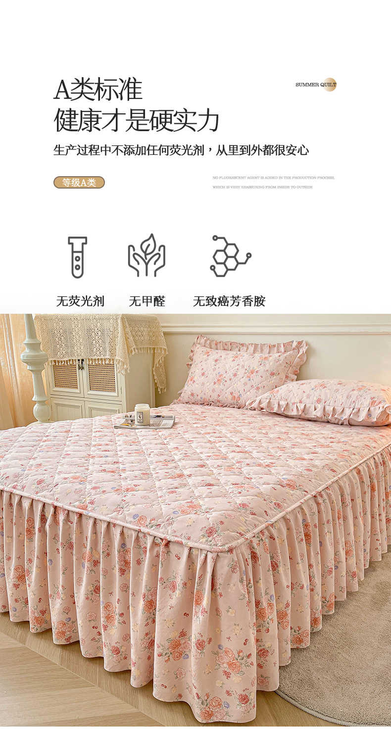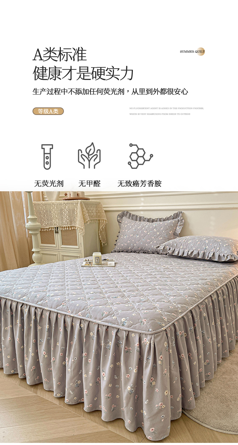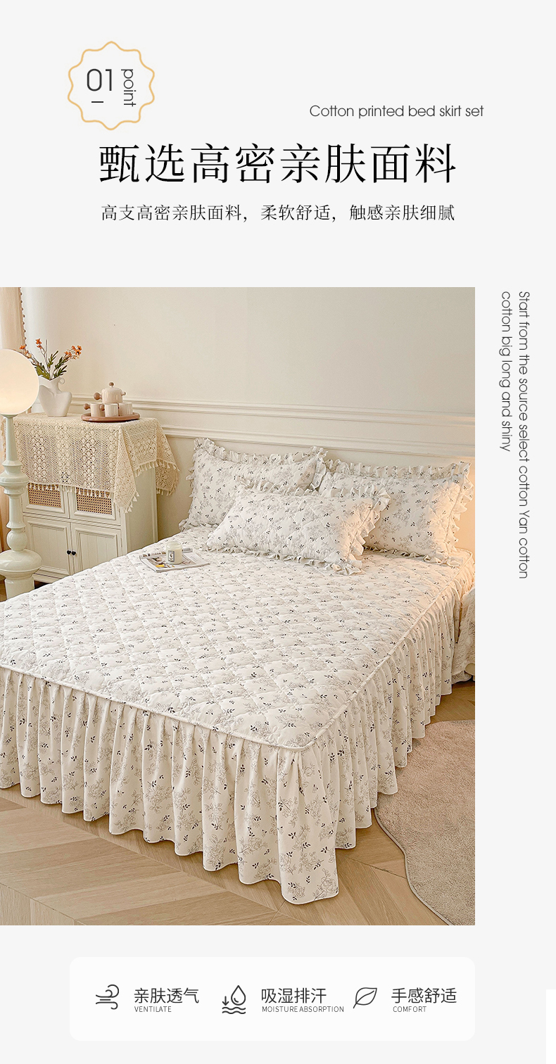(总)十个点家纺 2025新款千鸟格磨毛绗缝夹棉纯色花边床裙三件套,经典白色,经典兰色,经典浅灰,经典浅驼,经典深灰,经典玉粉