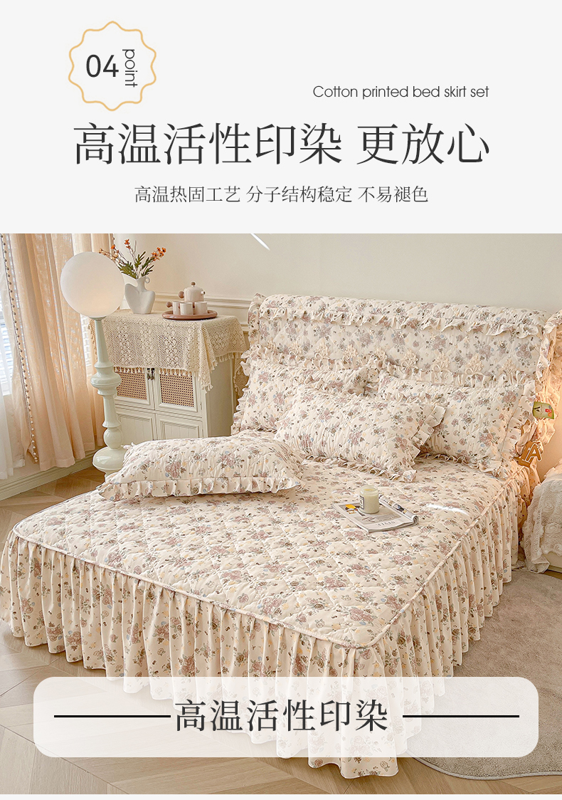 (总)十个点家纺 2024新款云锦棉印花床裙三件套-晚秋系列,繁花似锦,富贵小花,红粉世家,蓝色玫瑰,秋叶-兰,晚秋,杏叶繁花