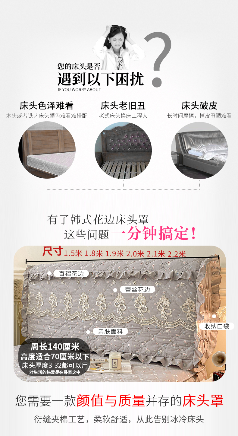 (总)十个点家纺 2025新款千鸟格磨毛绗缝夹棉纯色花边床头罩,经典白色,经典兰色,经典浅灰,经典浅驼,经典深灰,经典玉粉