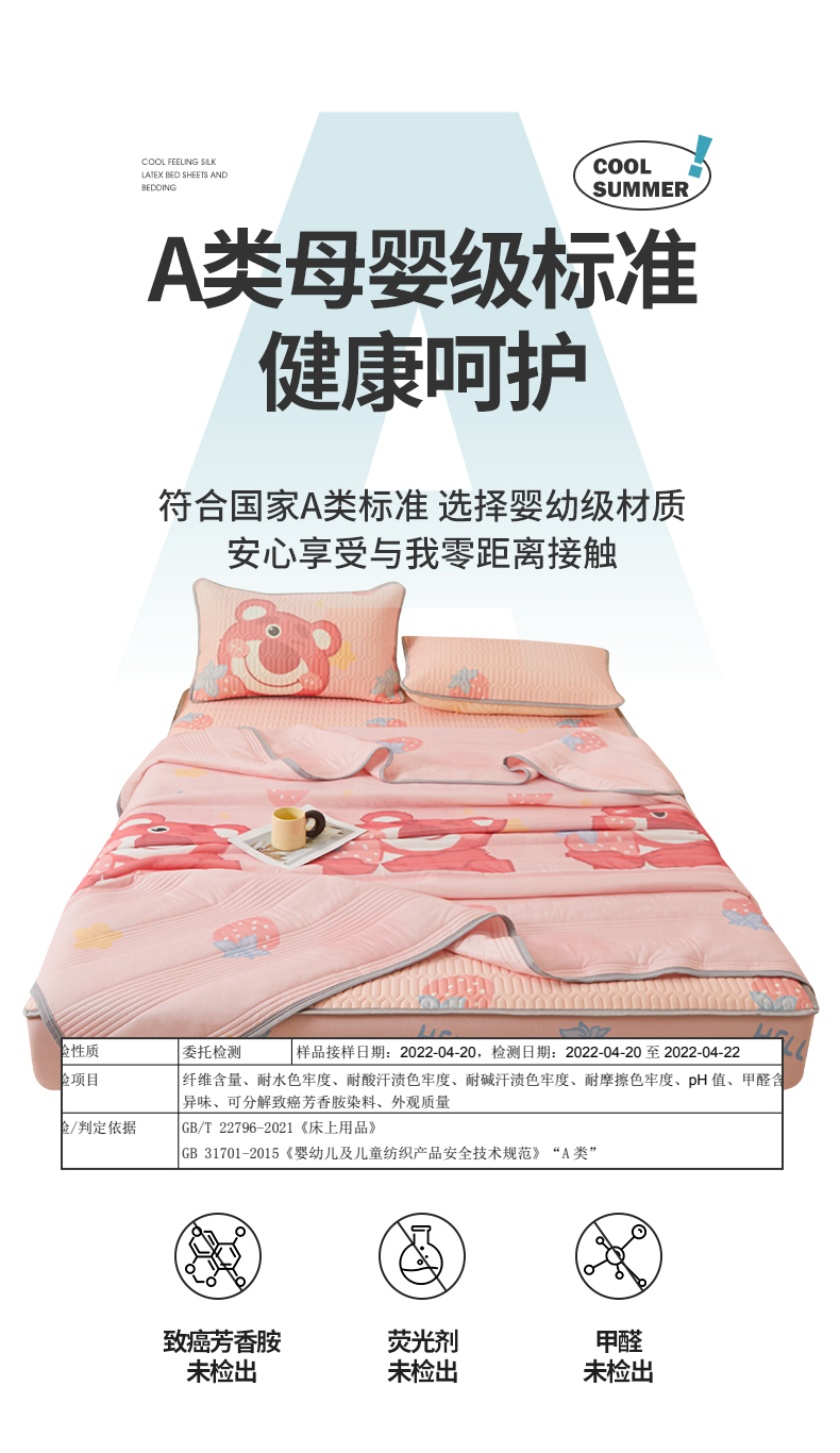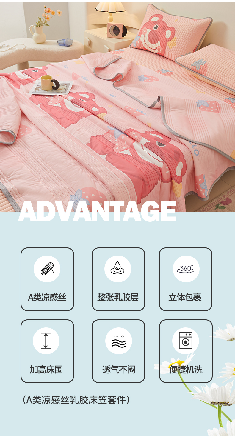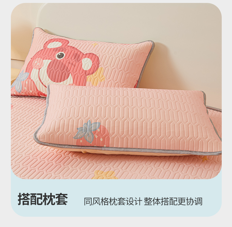 商品名称:伊人坊 2025新款A类凉感丝乳胶床笠凉席三件套 草莓熊