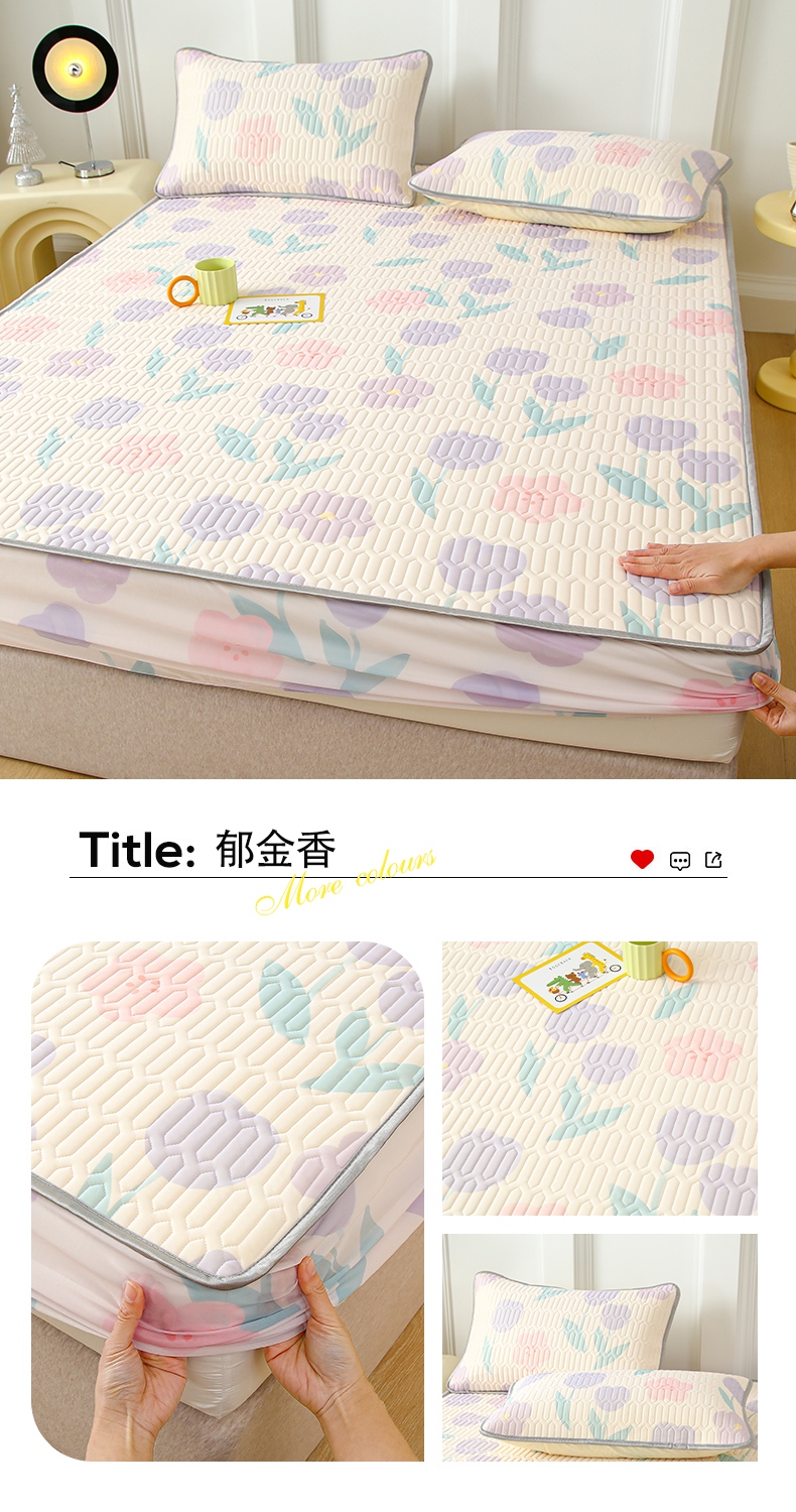 (总)伊人坊 2024新款原棉大豆防水床护垫,明月白,碧水青,布朗灰,玫瑰粉,米杏色,苹果绿