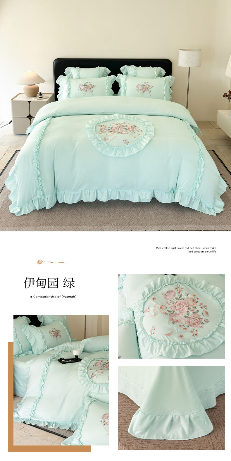 当前位置: 91家纺网 > 商品网购 > 床品套件 > 四件套 > 其它四件套 > 米可 2025新款云朵棉绣花工艺款四件套-伊甸园 伊甸园-绿