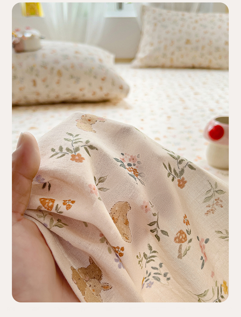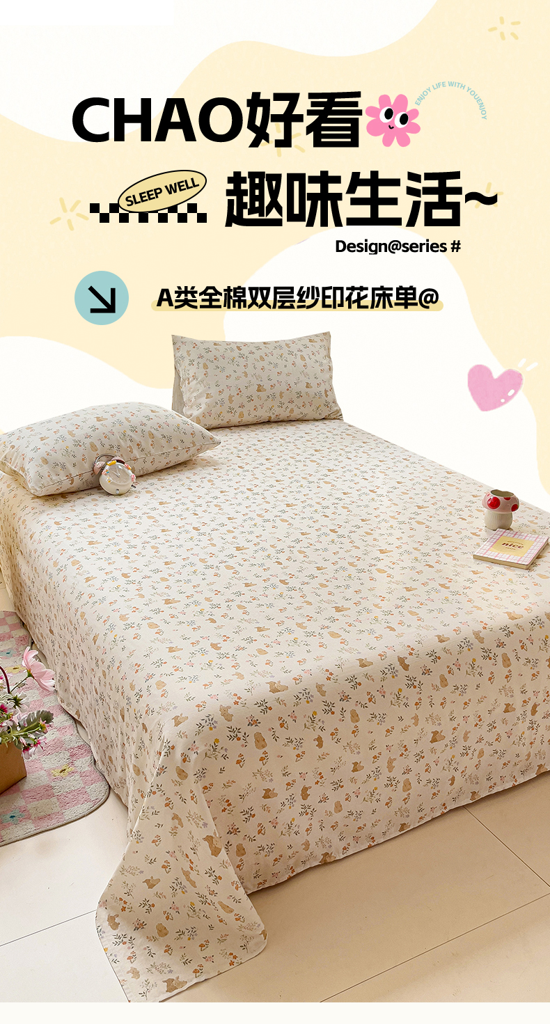 名兮-2025新款全棉双层纱床单 双层纱-乖乖兔