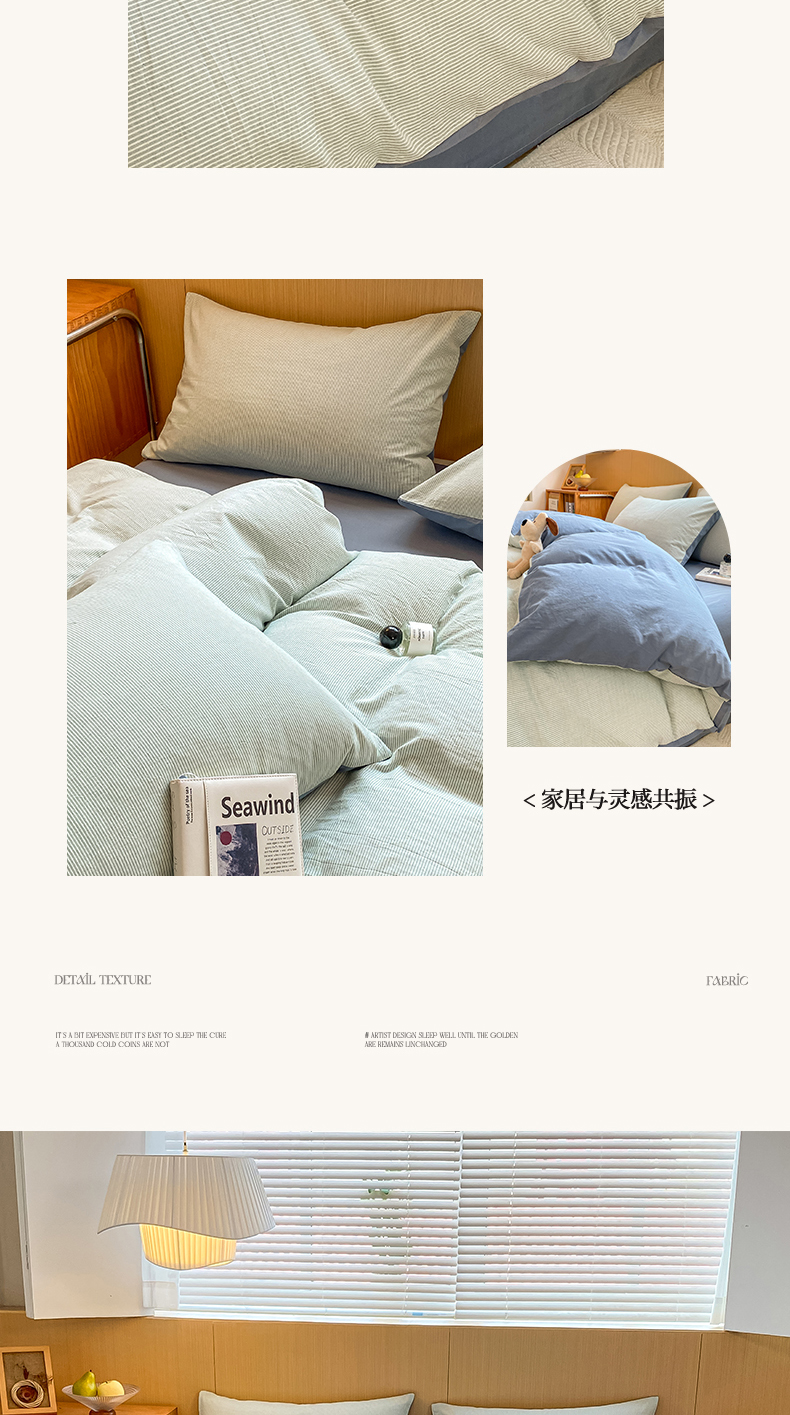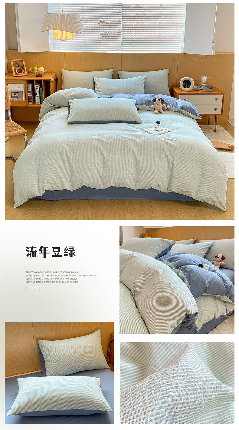 当前位置: 91家纺网 > 商品网购 > 床品套件 > 四件套 > 全棉普通四件套 > 恋人优选 2025新款条纹全棉水洗四件套 流年豆绿