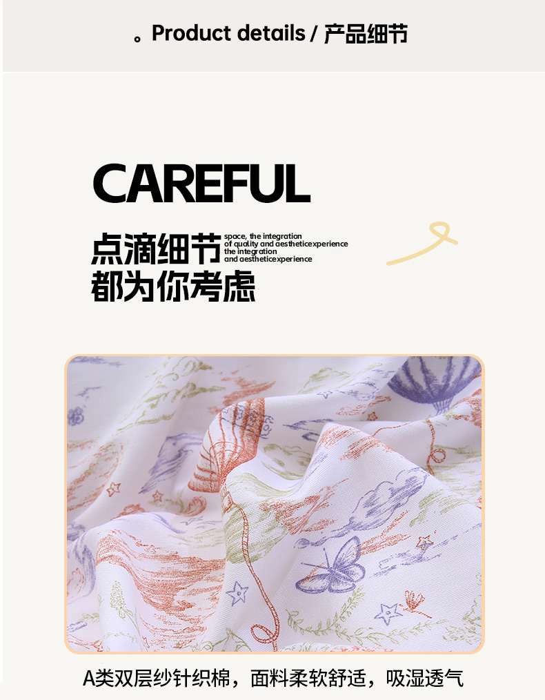 织写 2025新款A类双层纱针织棉四件套床单四件套床单四件套小清新四件套 动物乐园