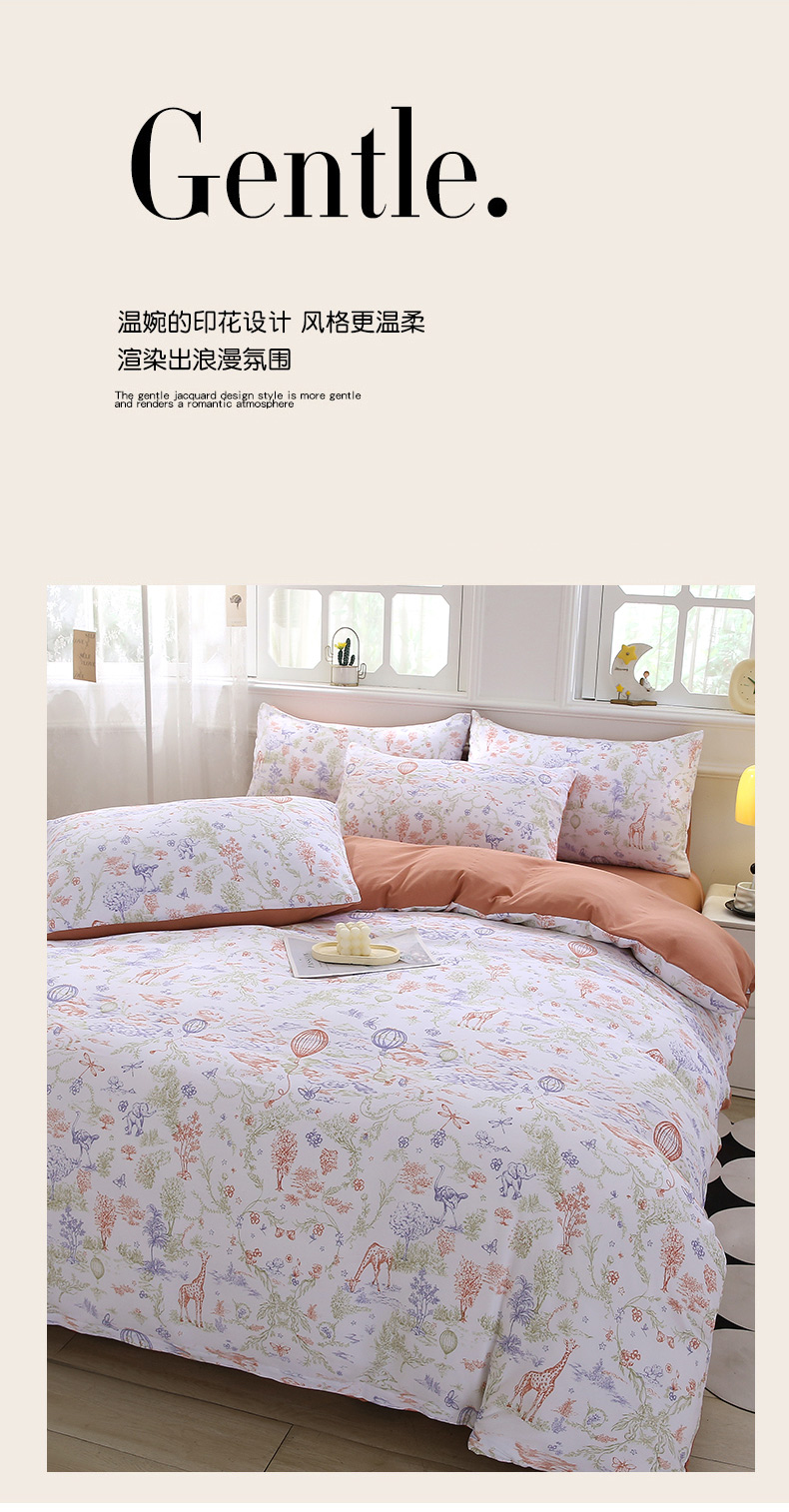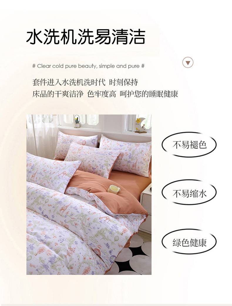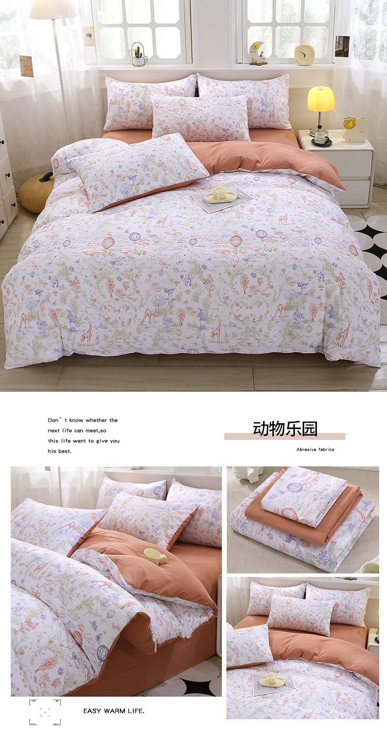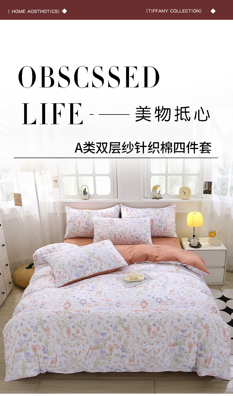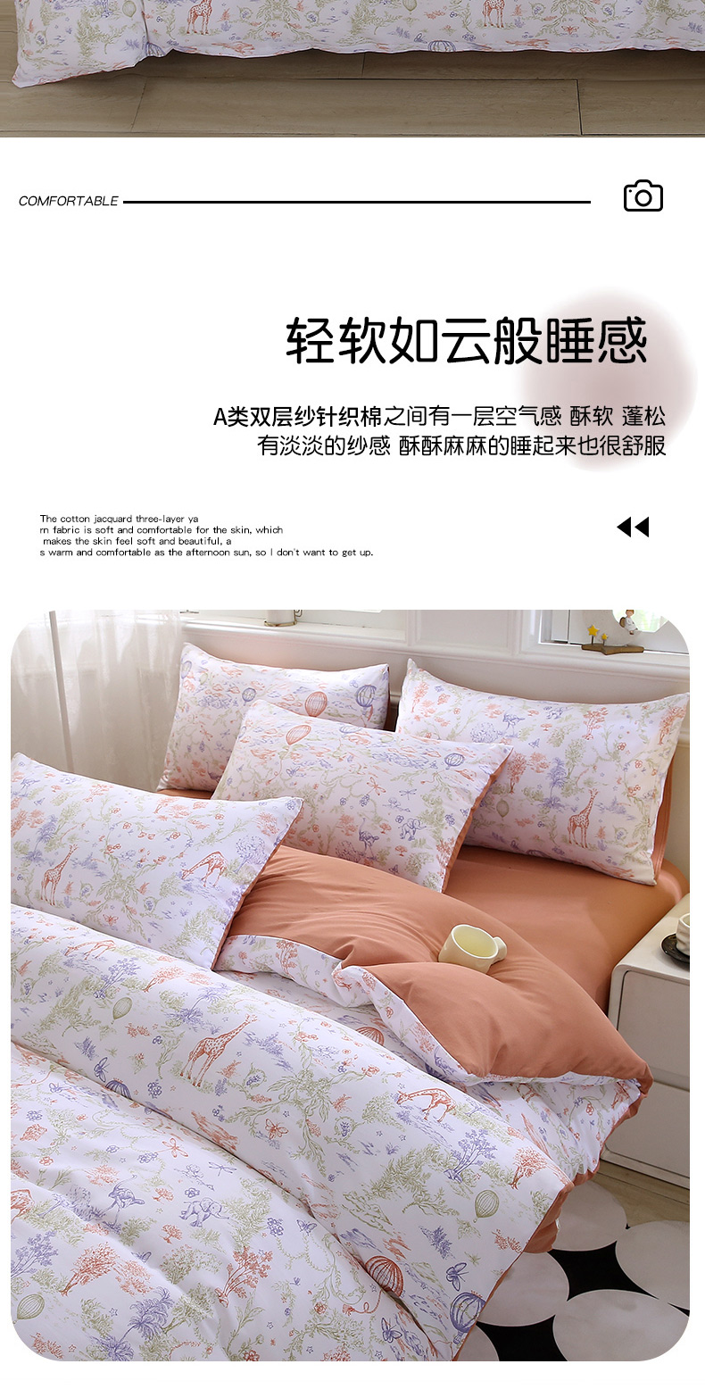 商品名称:织写 2025新款A类双层纱针织棉四件套床单四件套床单四件套小清新四件套 动物乐园
