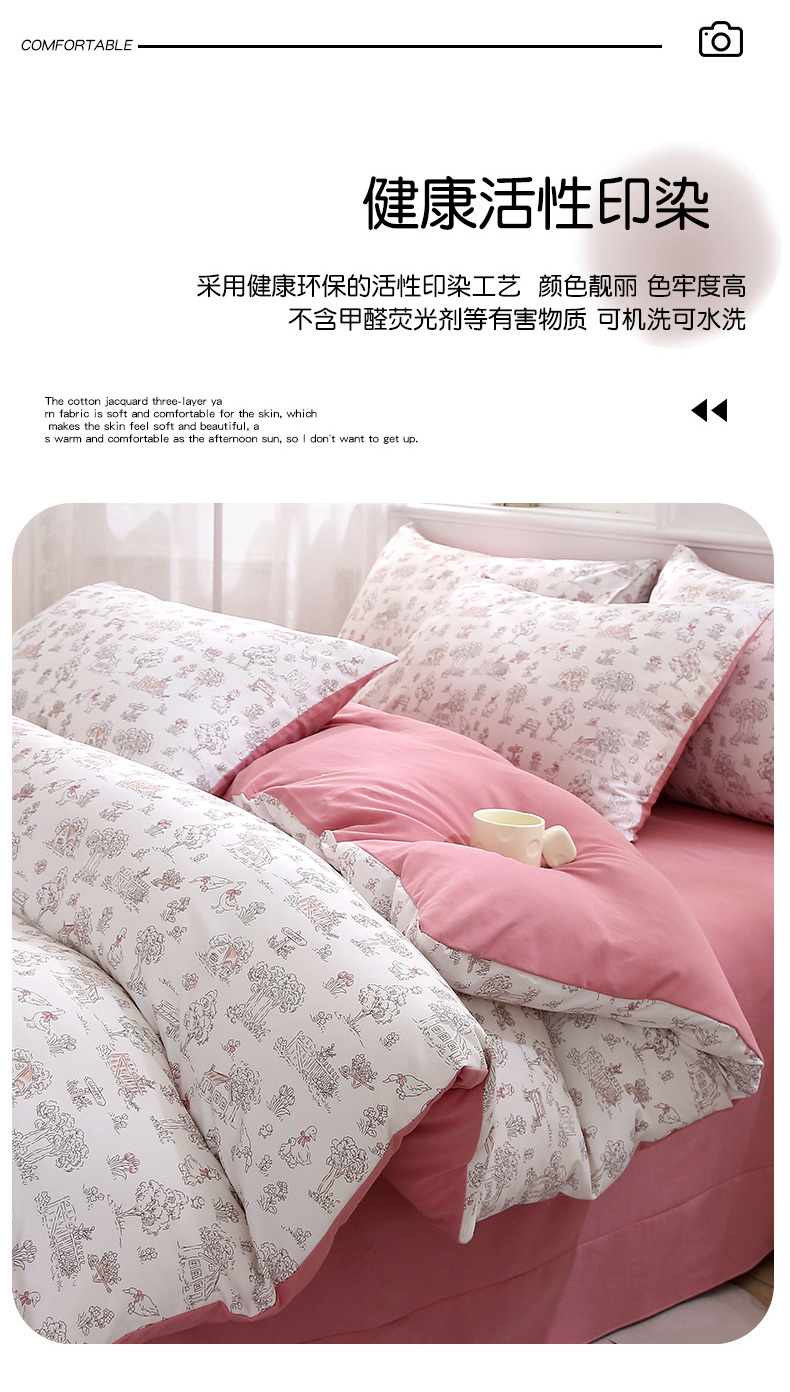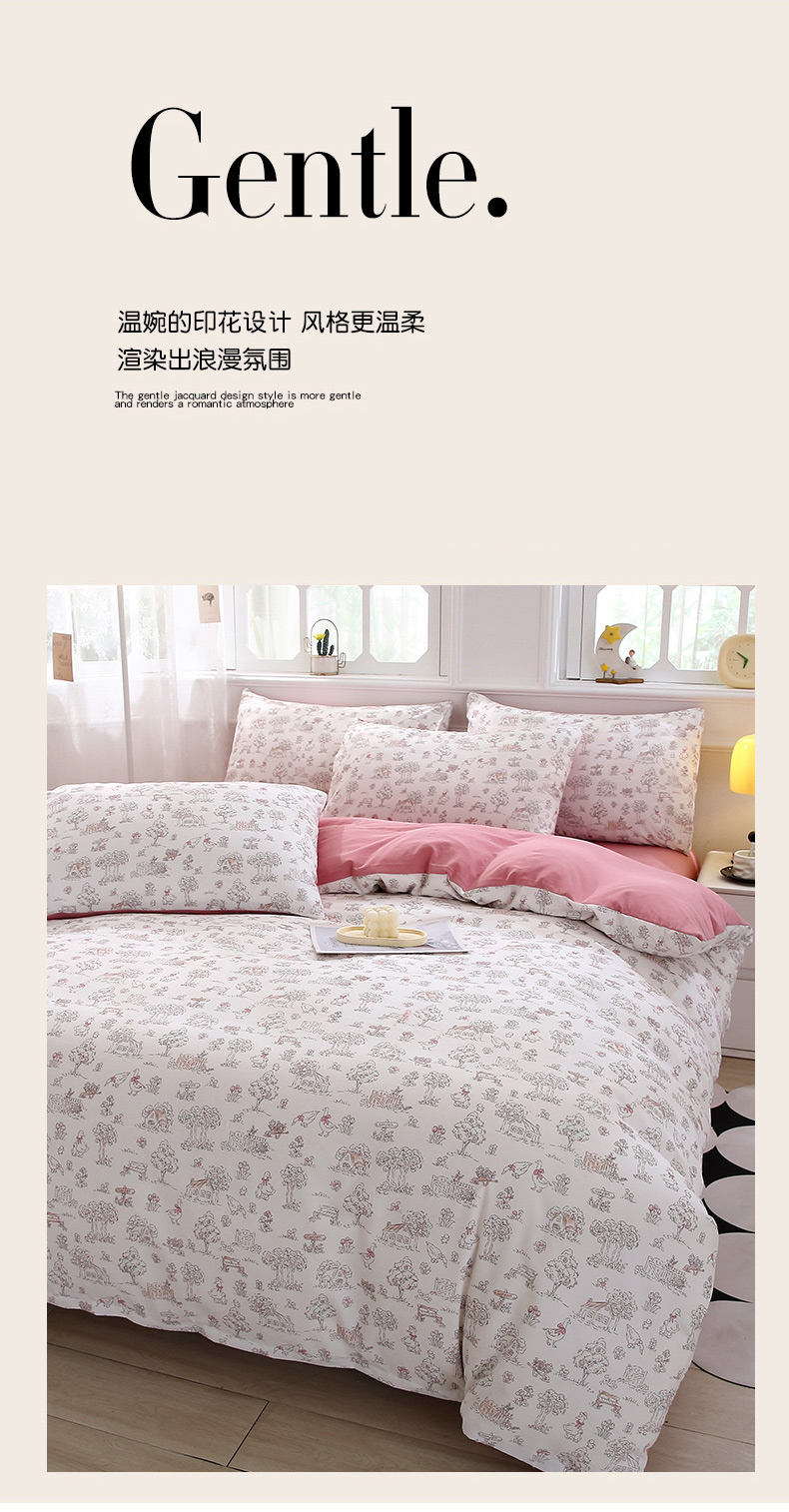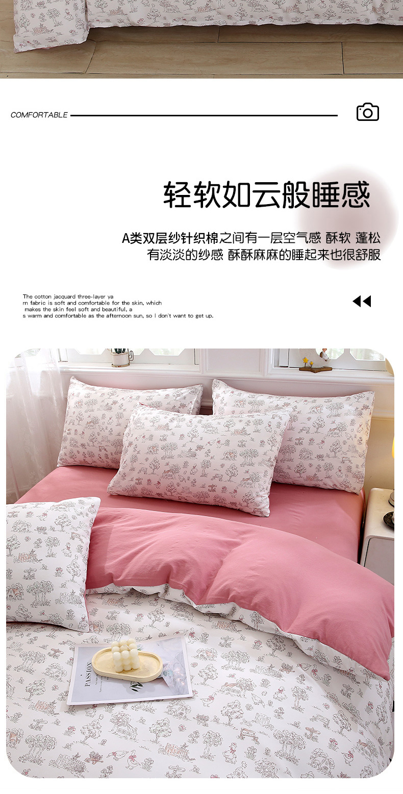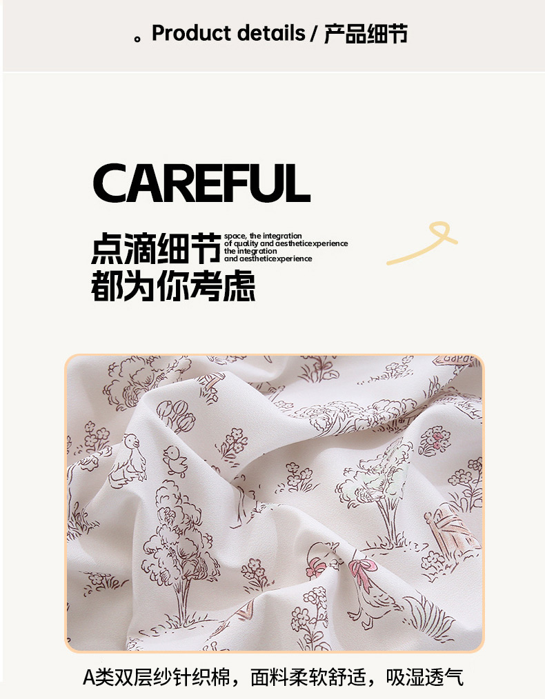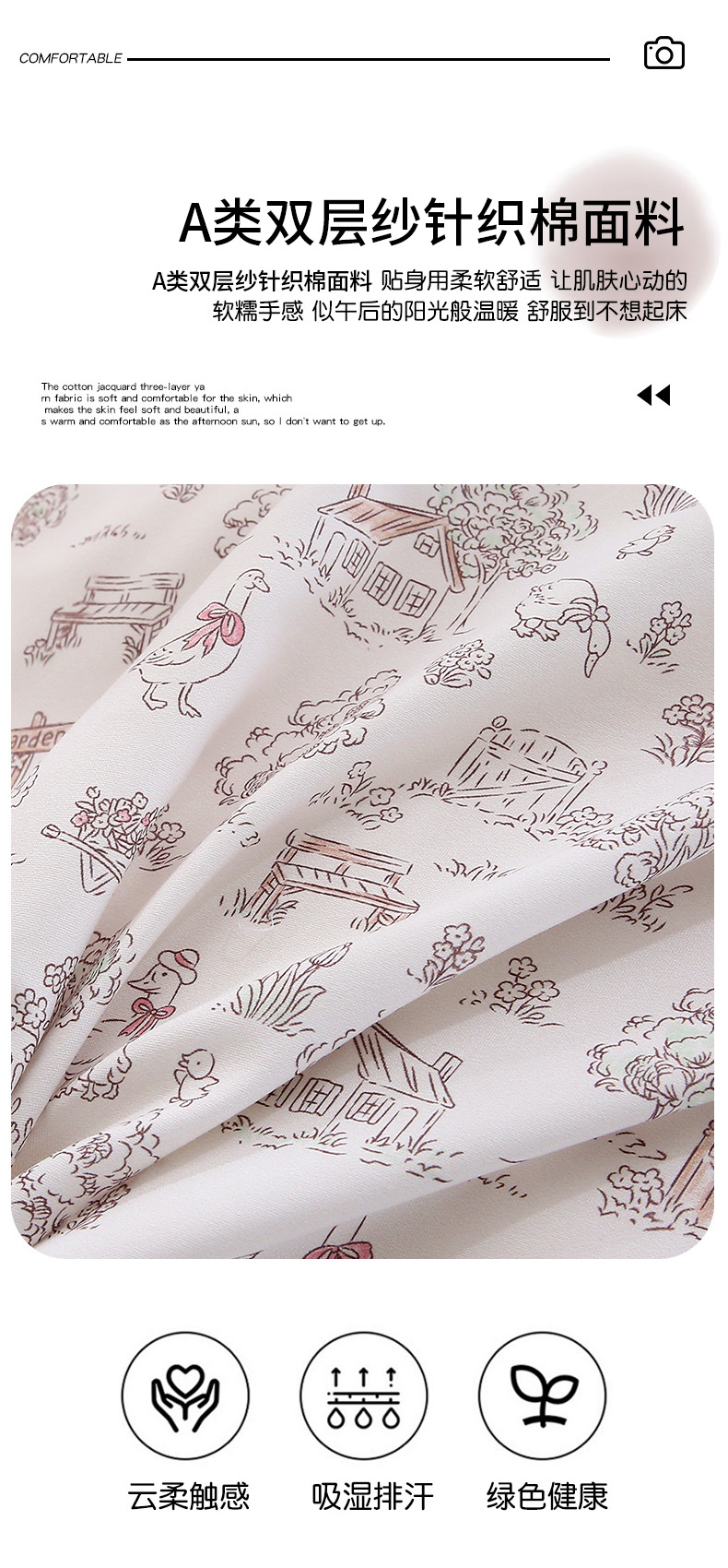 织写 2025新款A类双层纱针织棉四件套床单四件套床单四件套小清新四件套 乡间漫步