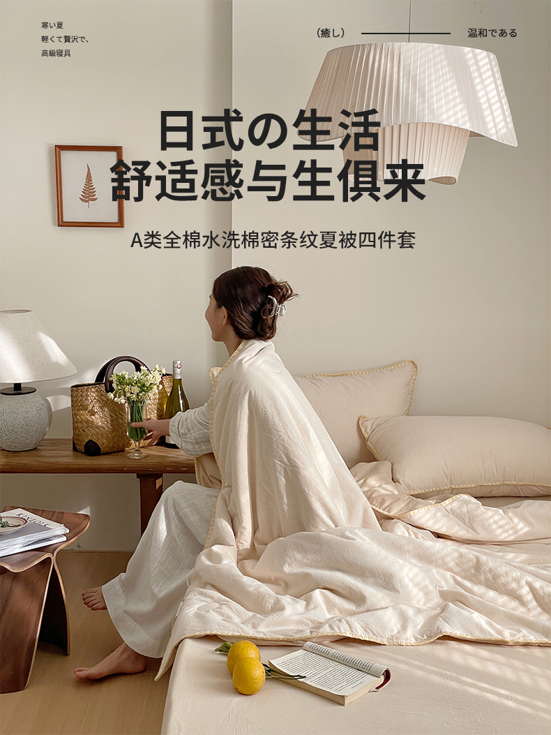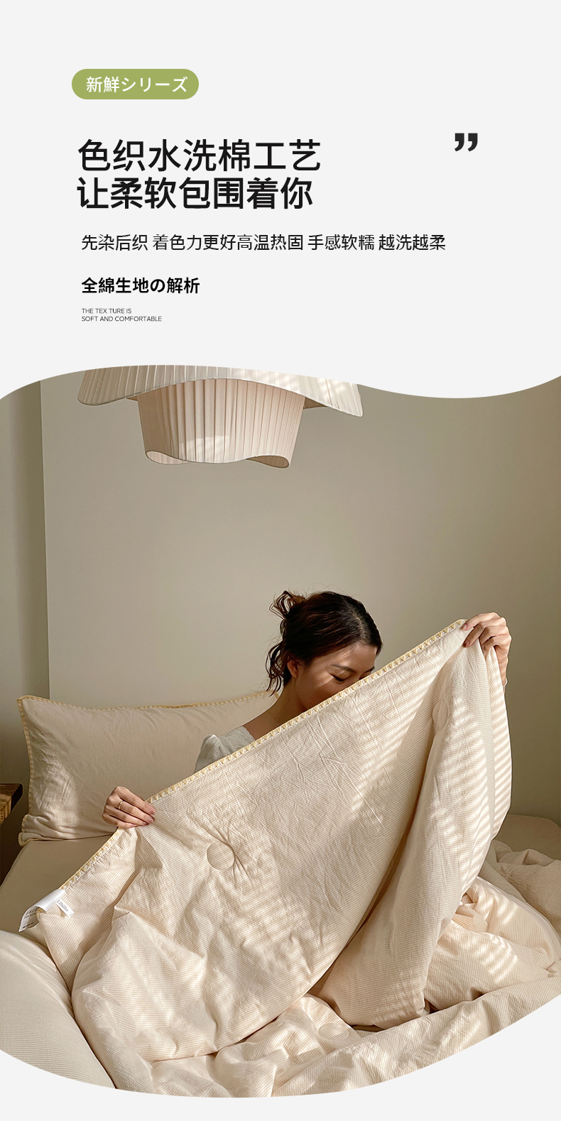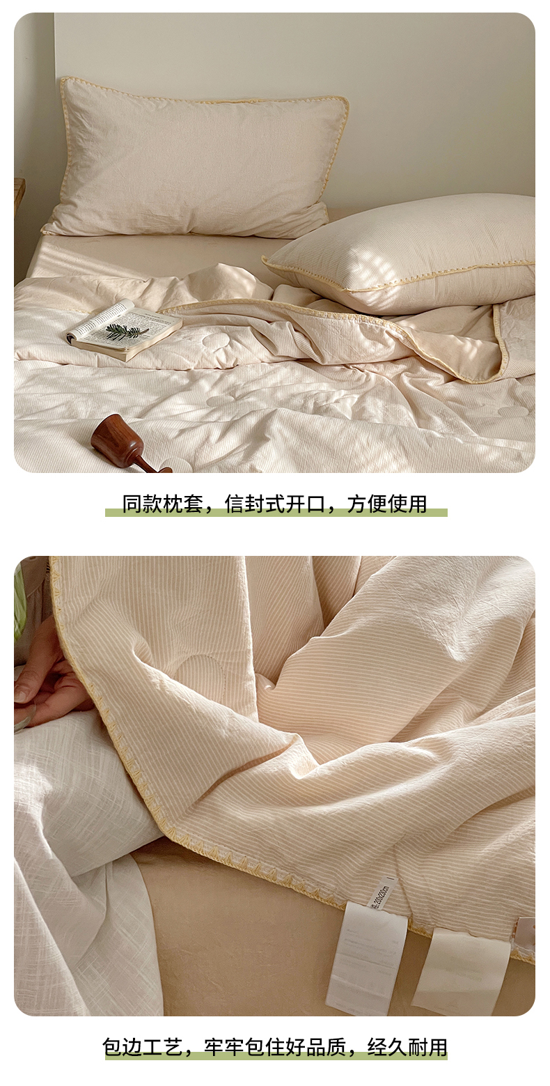 • 91家纺网 家纺一手货源 找家纺 被窝 2025新款全棉色织水洗棉夏被贝壳边大豆夏被空调被全棉夏凉被 细条纹米