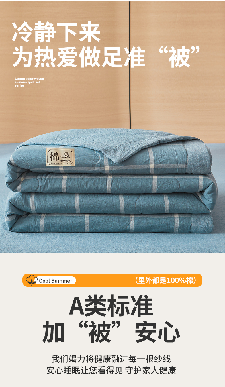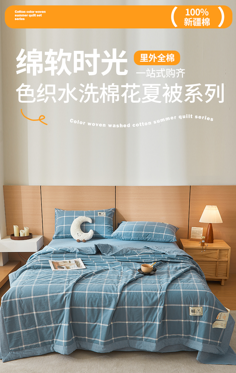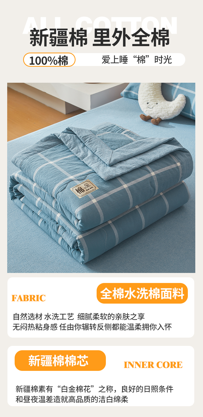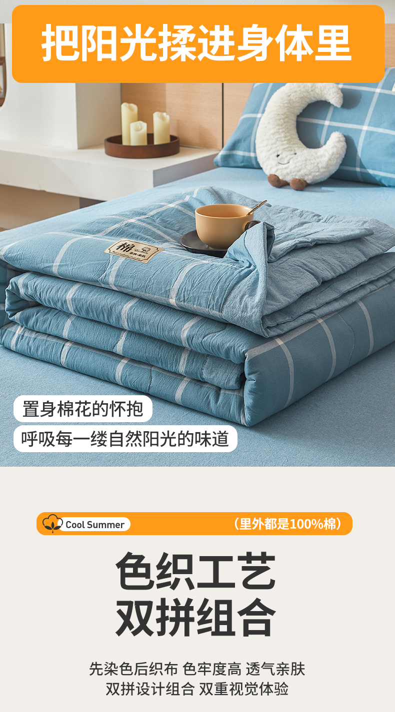 • 91家纺网 家纺一手货源 找家纺 招财星家纺 2025新款新疆棉花被夏被100%里外全棉棉花夏被无印风全棉色织水洗棉夏凉被空调被春秋被单人可机洗 上野