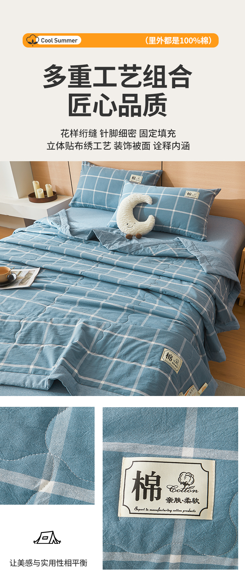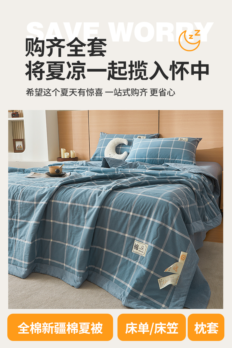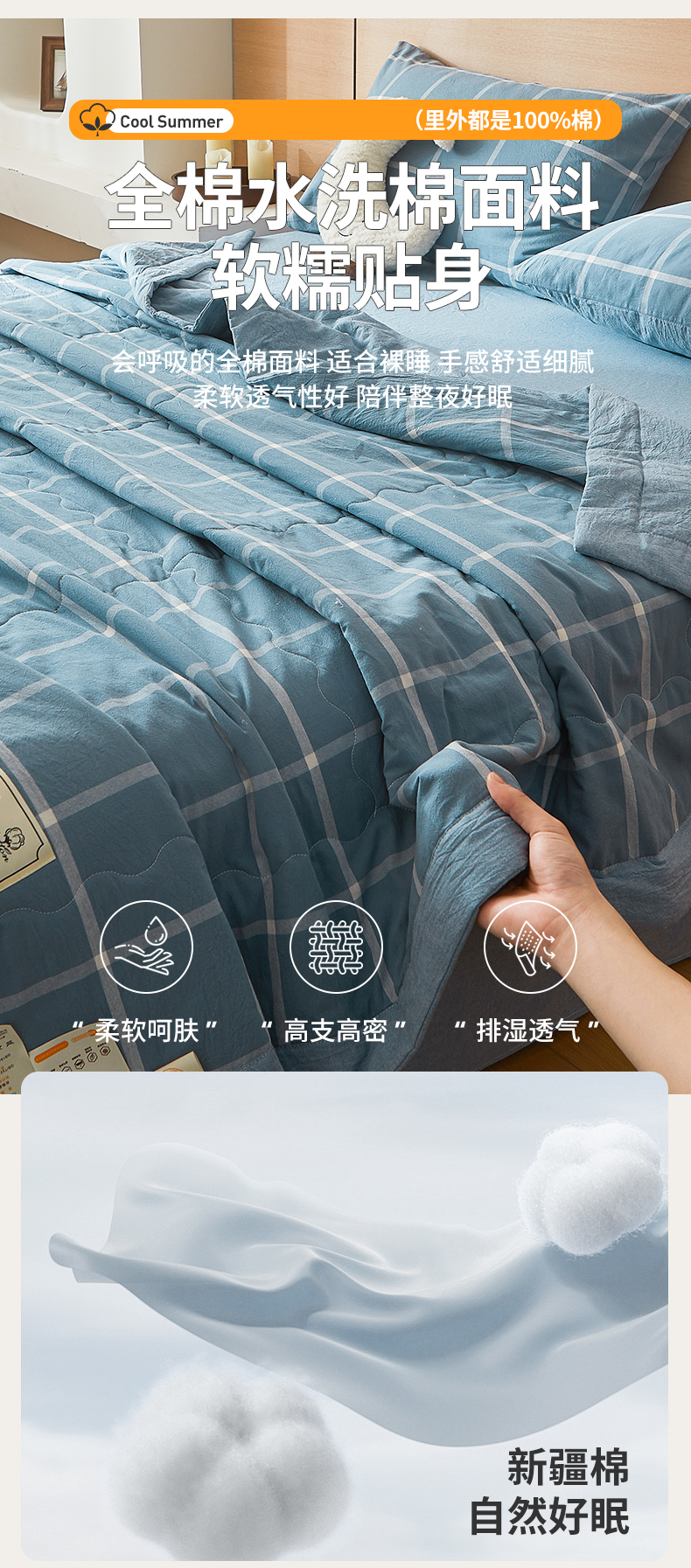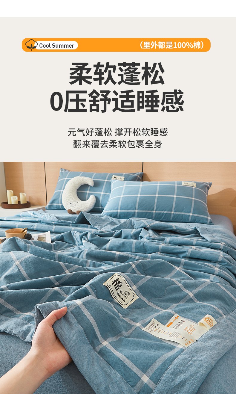 • 91家纺网 家纺一手货源 找家纺 招财星家纺 2025新款新疆棉花被夏被100%里外全棉棉花夏被无印风全棉色织水洗棉夏凉被空调被春秋被单人可机洗 上野