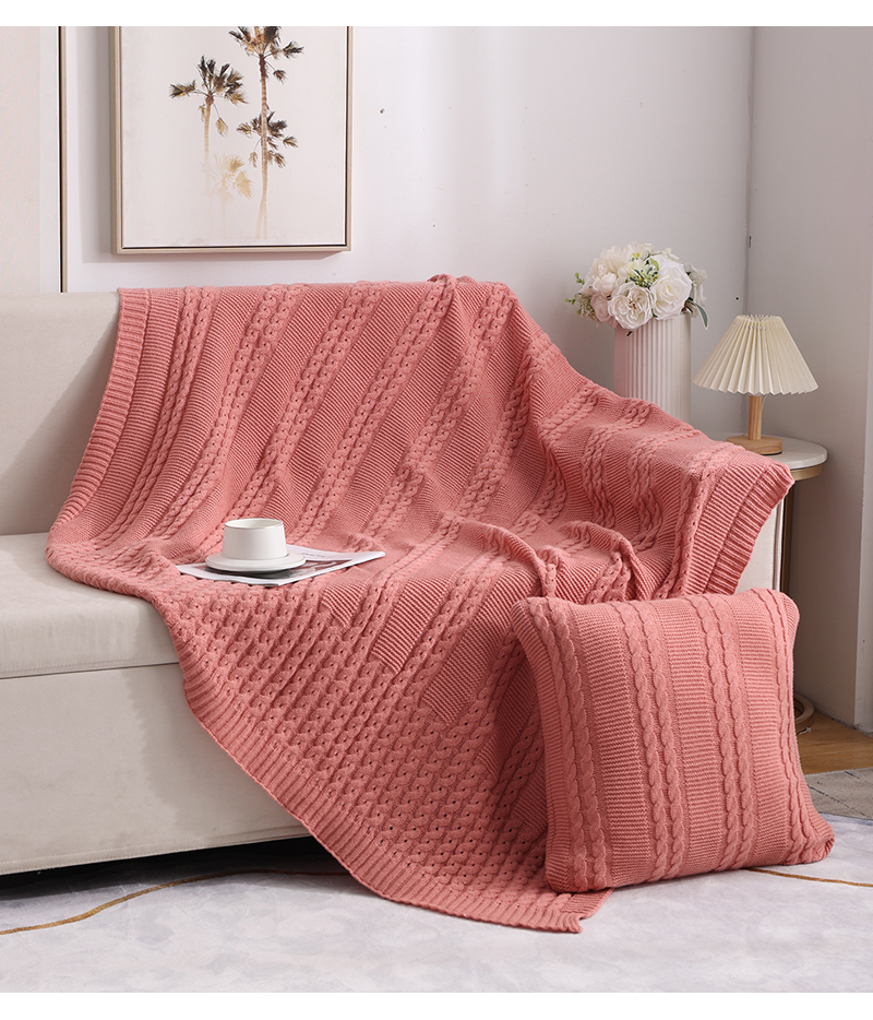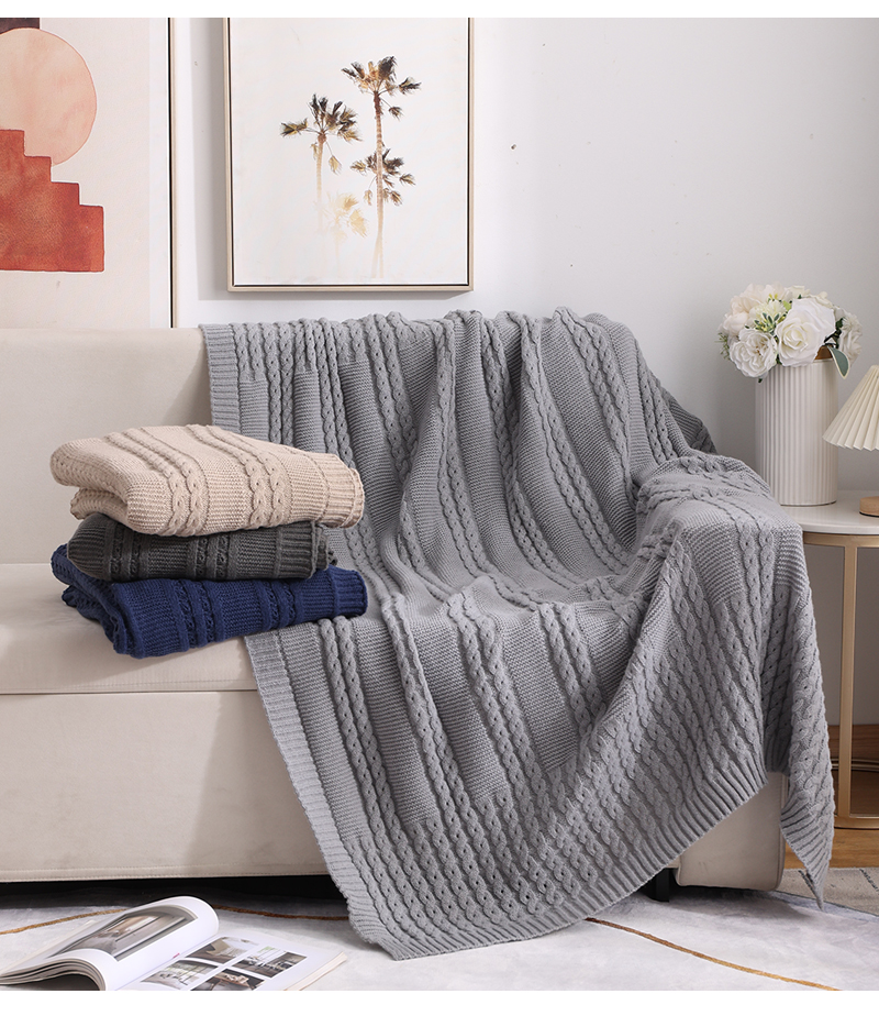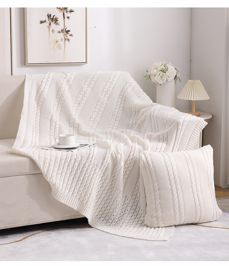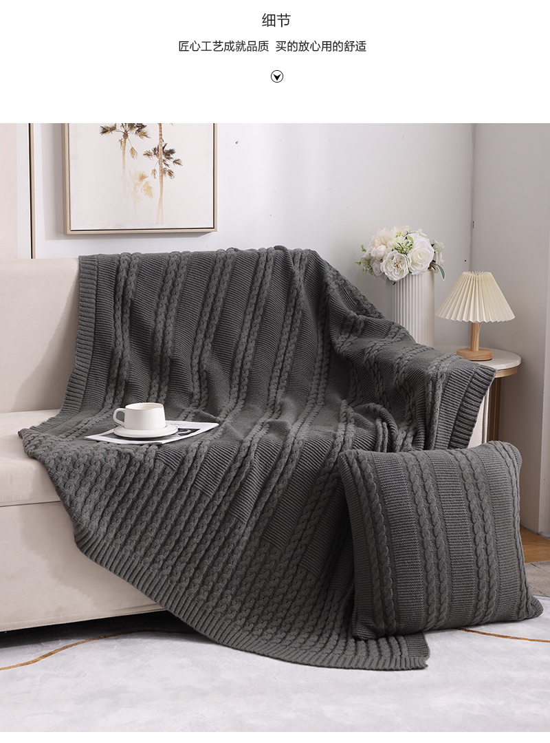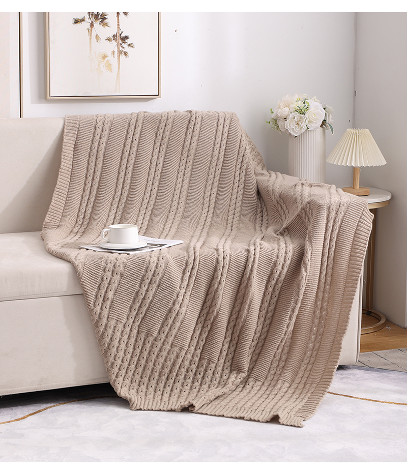 商品名称:(总)肖恩毯业 2025新款鹿毛绒针织毯纯色素色螺纹镂空苏头北欧毛毯复古沙发毯休闲毯子