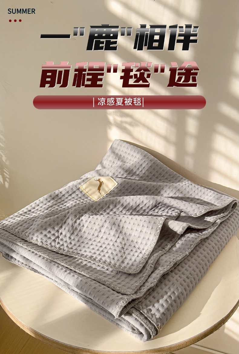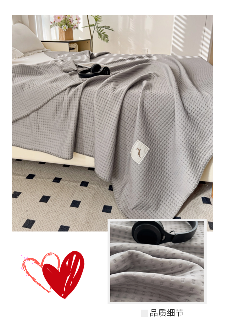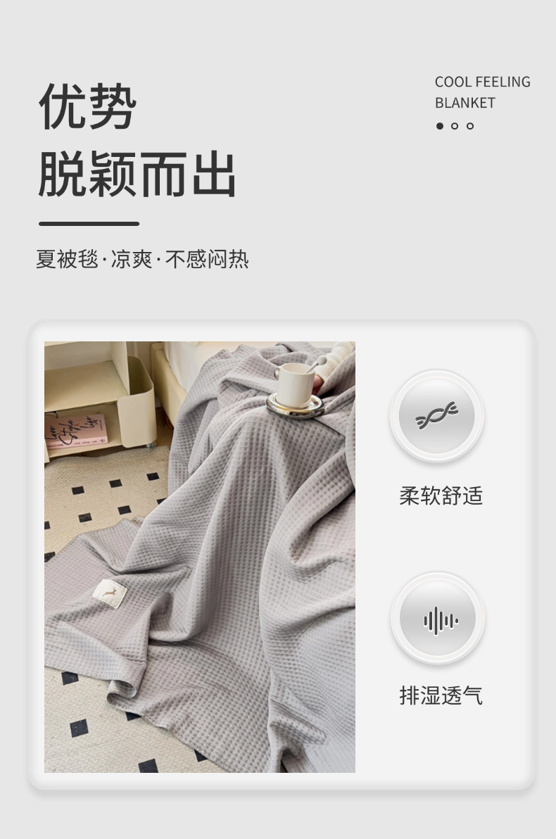 十九色 2025新款全尺寸三角针盖毯夏被华夫格双面冷感夏被毯 幻影灰