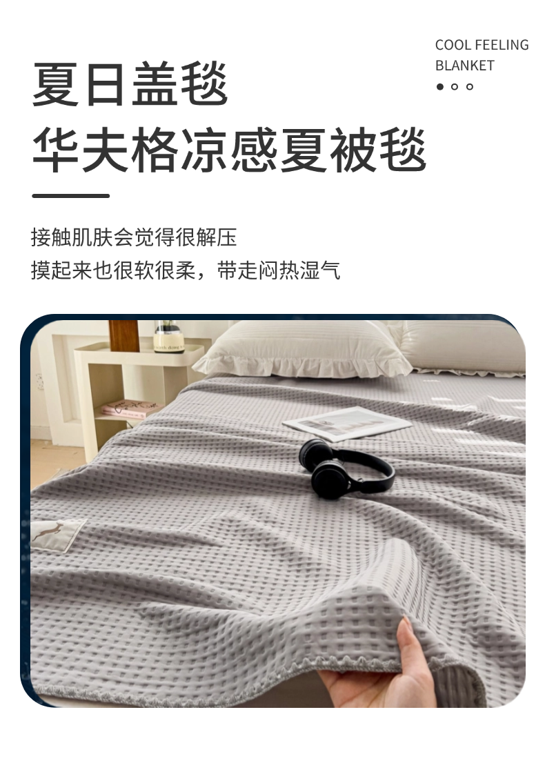商品名称:十九色 2025新款全尺寸三角针盖毯夏被华夫格双面冷感夏被毯 幻影灰