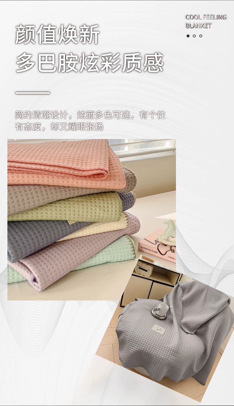 (总)十九色 2025新款全尺寸三角针盖毯夏被华夫格双面冷感夏被毯,淡绛红,海军蓝,海天蓝,幻影灰,抹茶绿,牵牛紫,象牙白