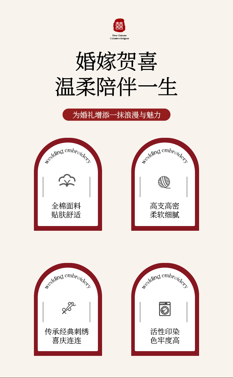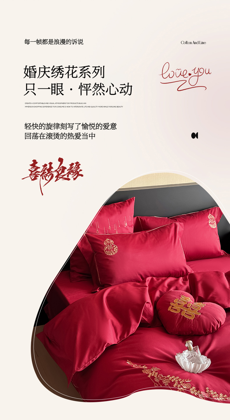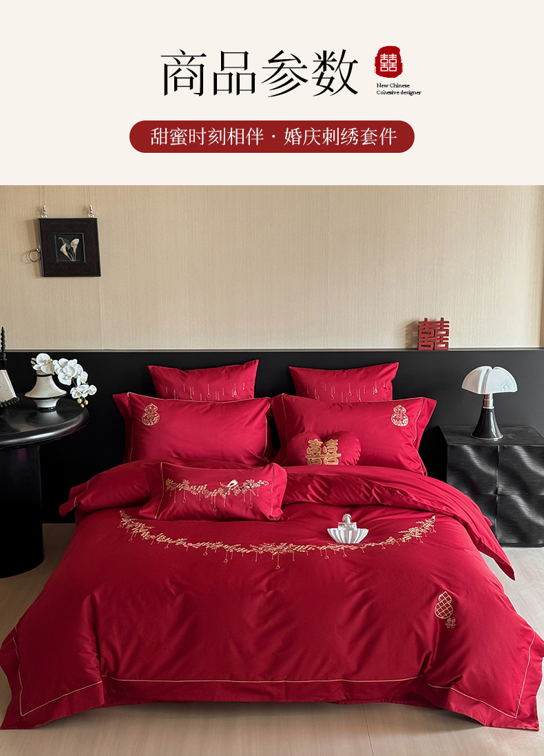 商品名称:(总)FORTWO 2025新款100S全棉长绒棉婚庆绣花四件套