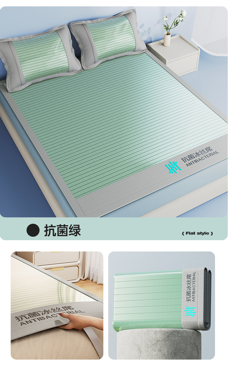 • 91家纺网 家纺一手货源 找家纺 卡初家居  2025新款A类抗菌冰丝席 席子凉席 抗菌绿