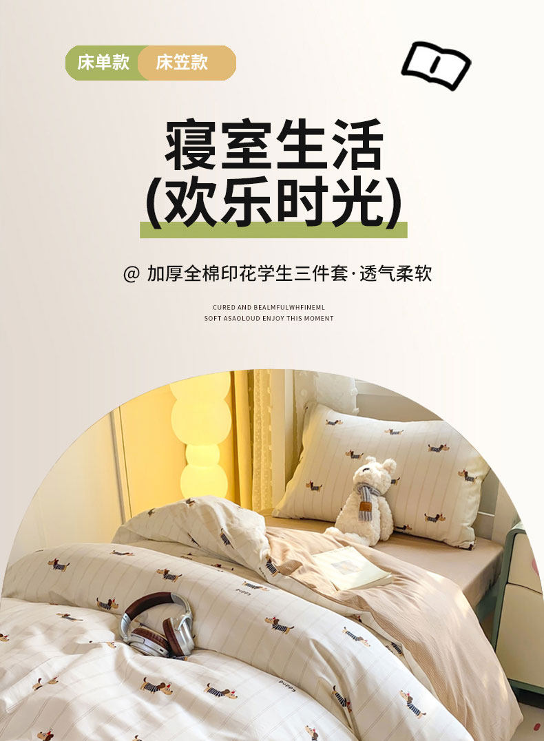 宅部落 2025新款全棉三件套纯棉学生宿舍上下铺六件套 腊肠狗