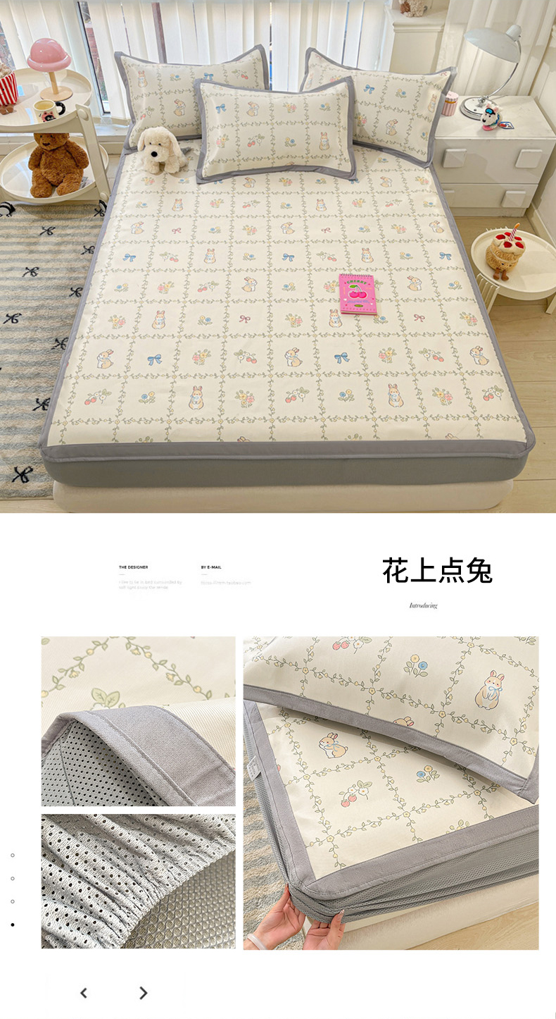川悦生活2025新款小清新床笠600D立体宽边冰丝席床笠款 床笠花上点兔
