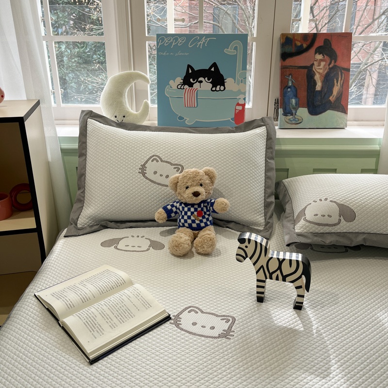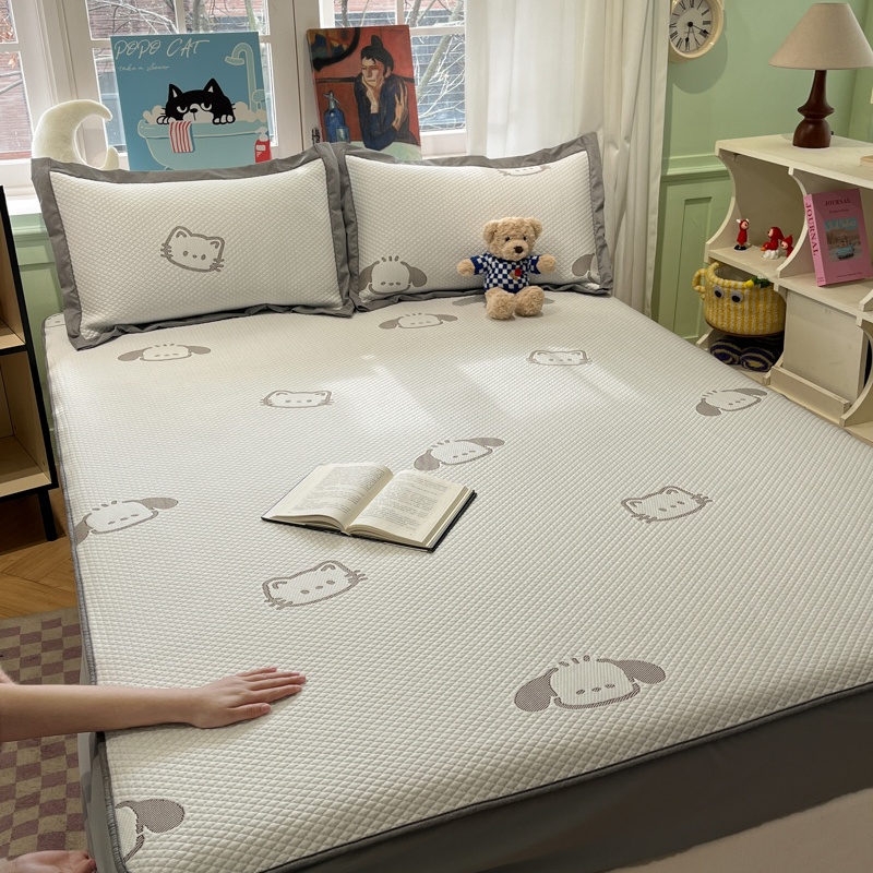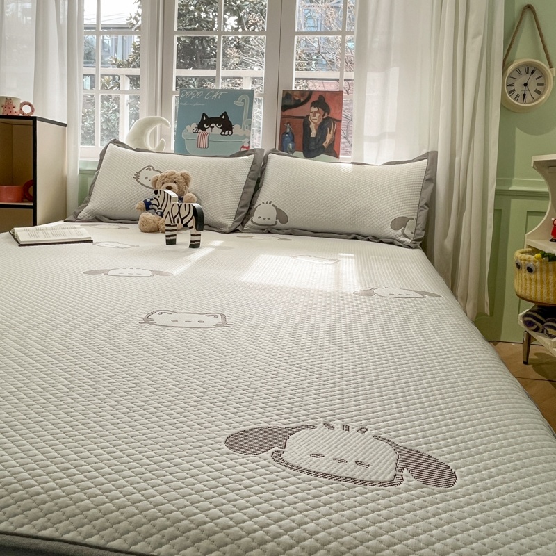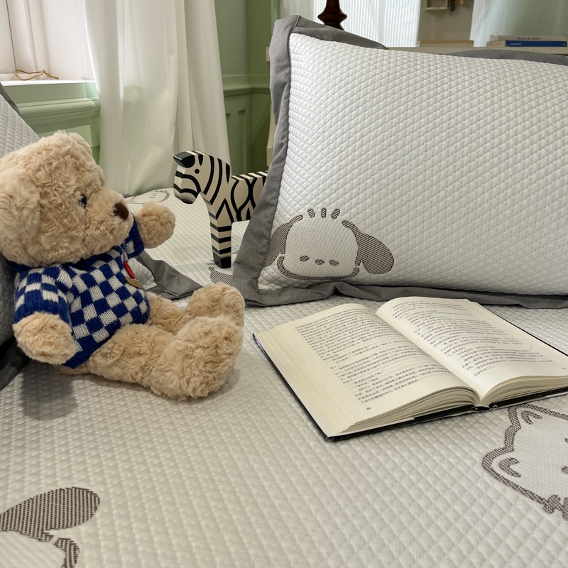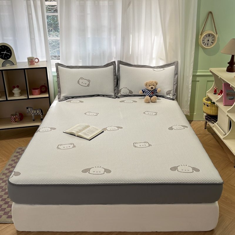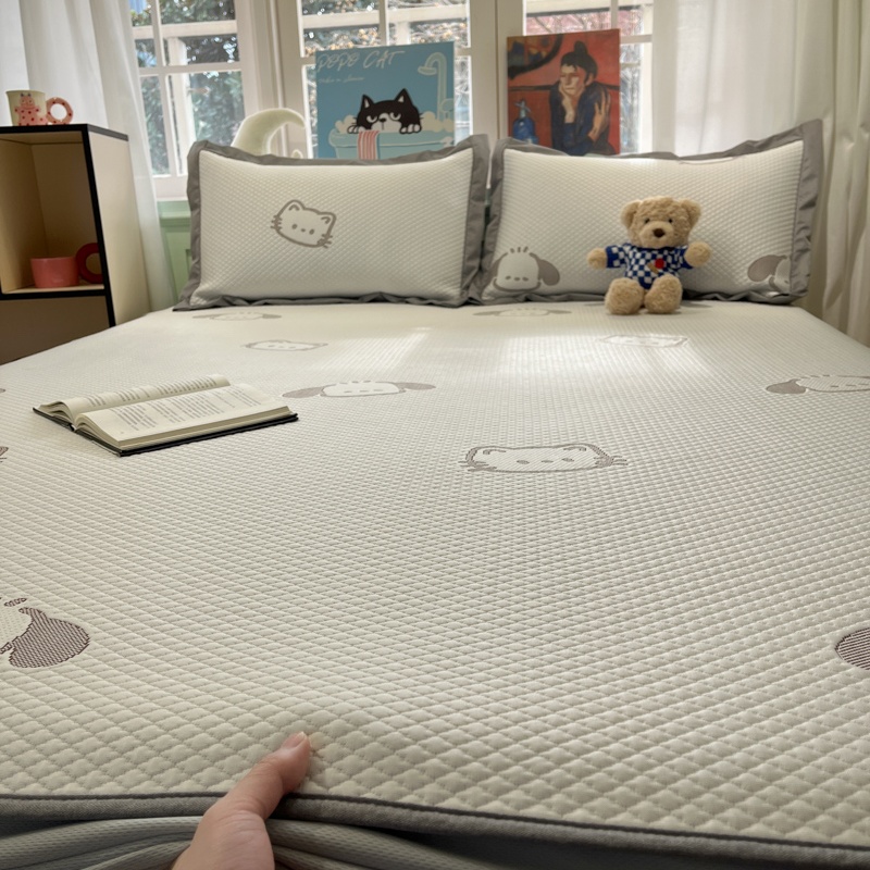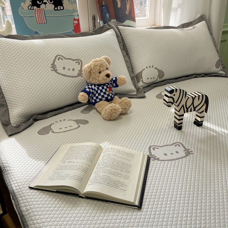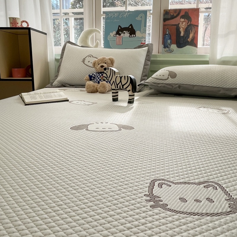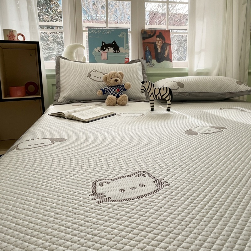 • 91家纺网 家纺一手货源 找家纺 孩子王家纺 2025新款冰丝席提花冰豆豆系列床单床笠 喵喵汪岛床笠